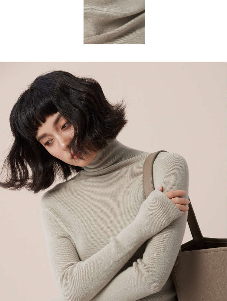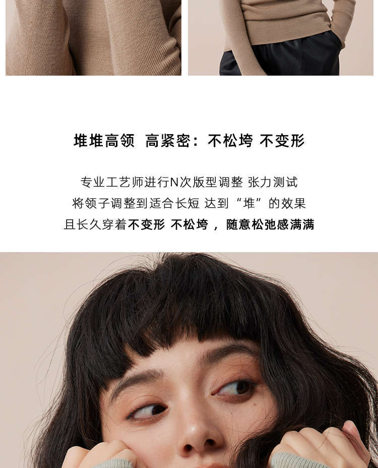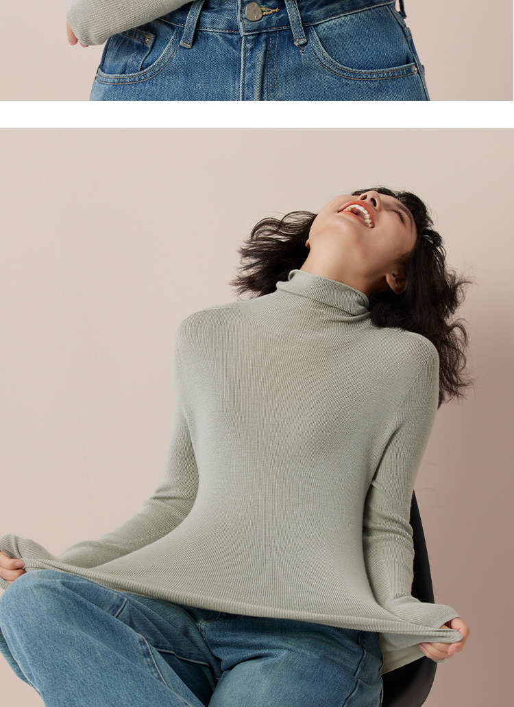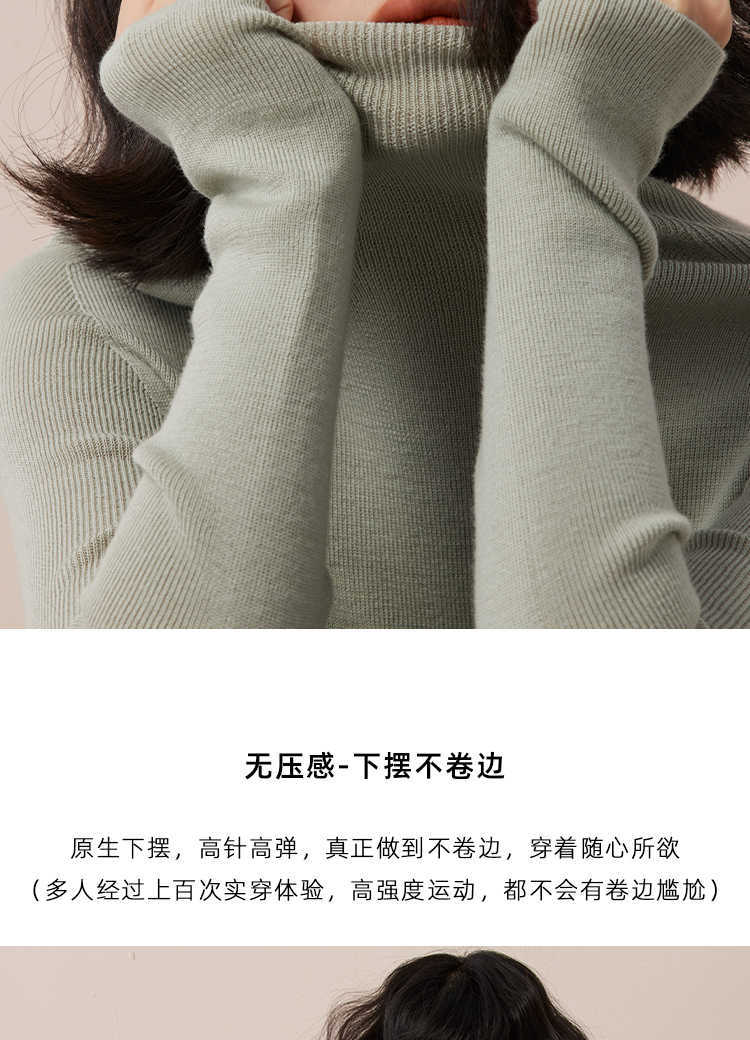 Lagur+8.8℃(不起球抗菌无静电)自发热加绒桑蚕丝高领打底衫女