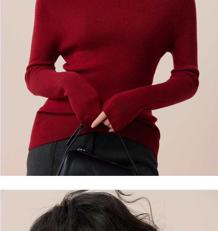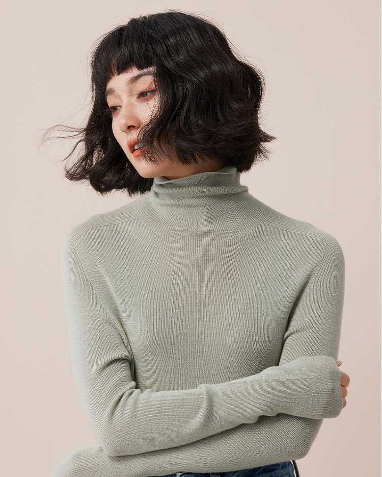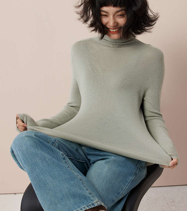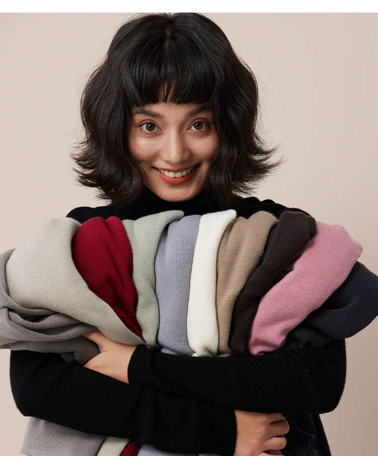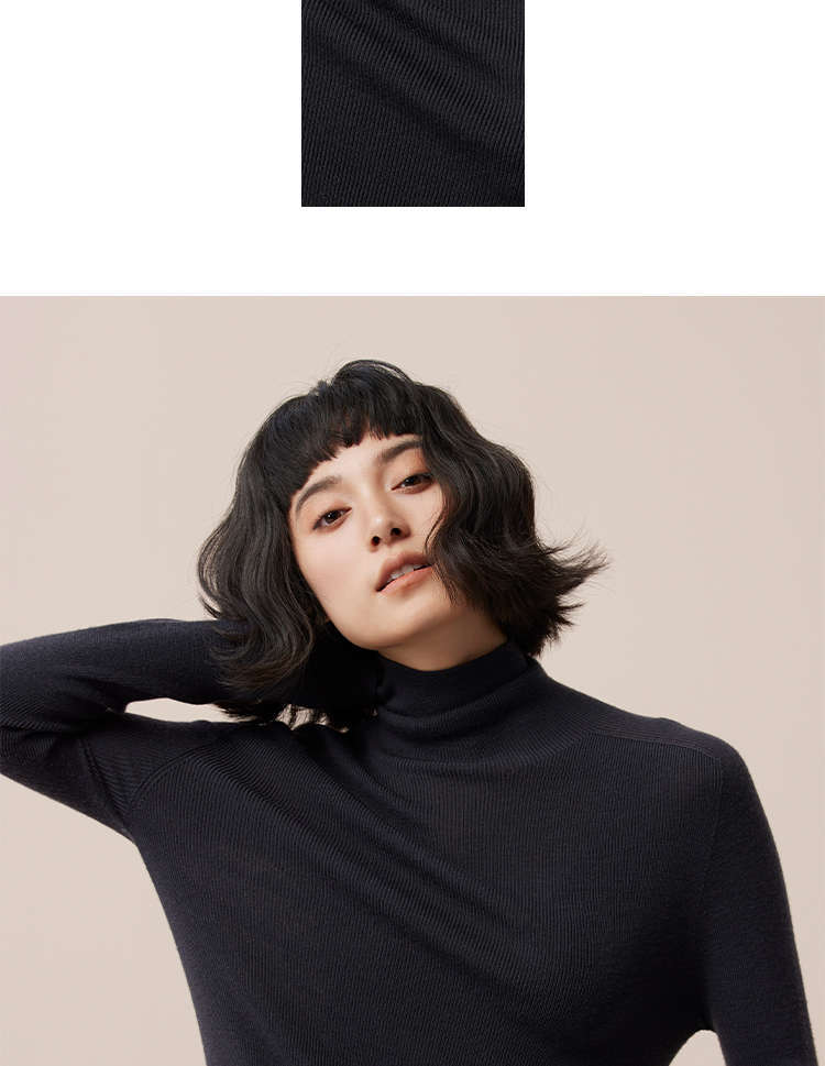 「高級感あふれるサプライズカラー」洗濯機で洗えるメリノウール+桑蚕糸ハイネックインナーウェアレディーストップス冬