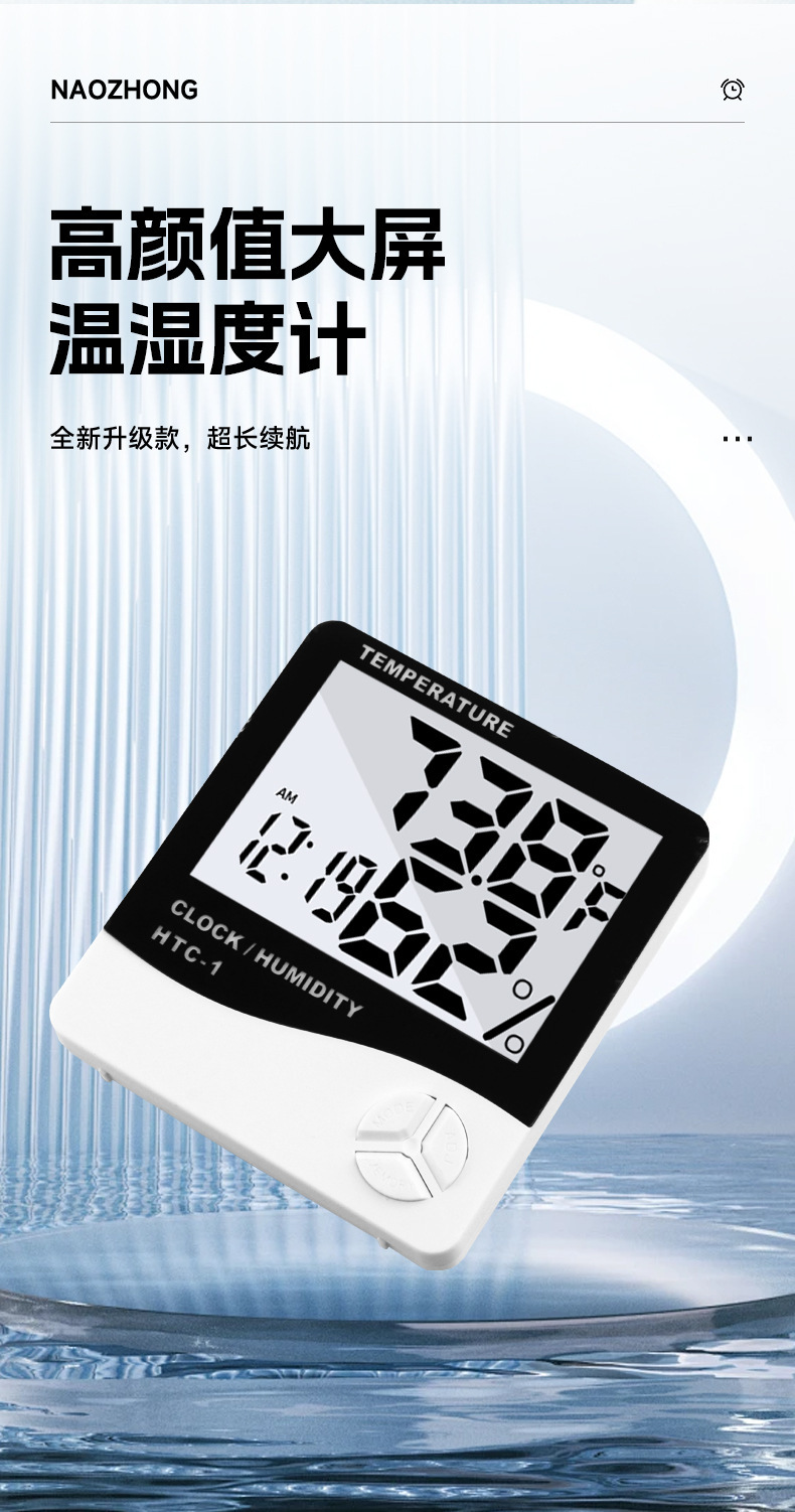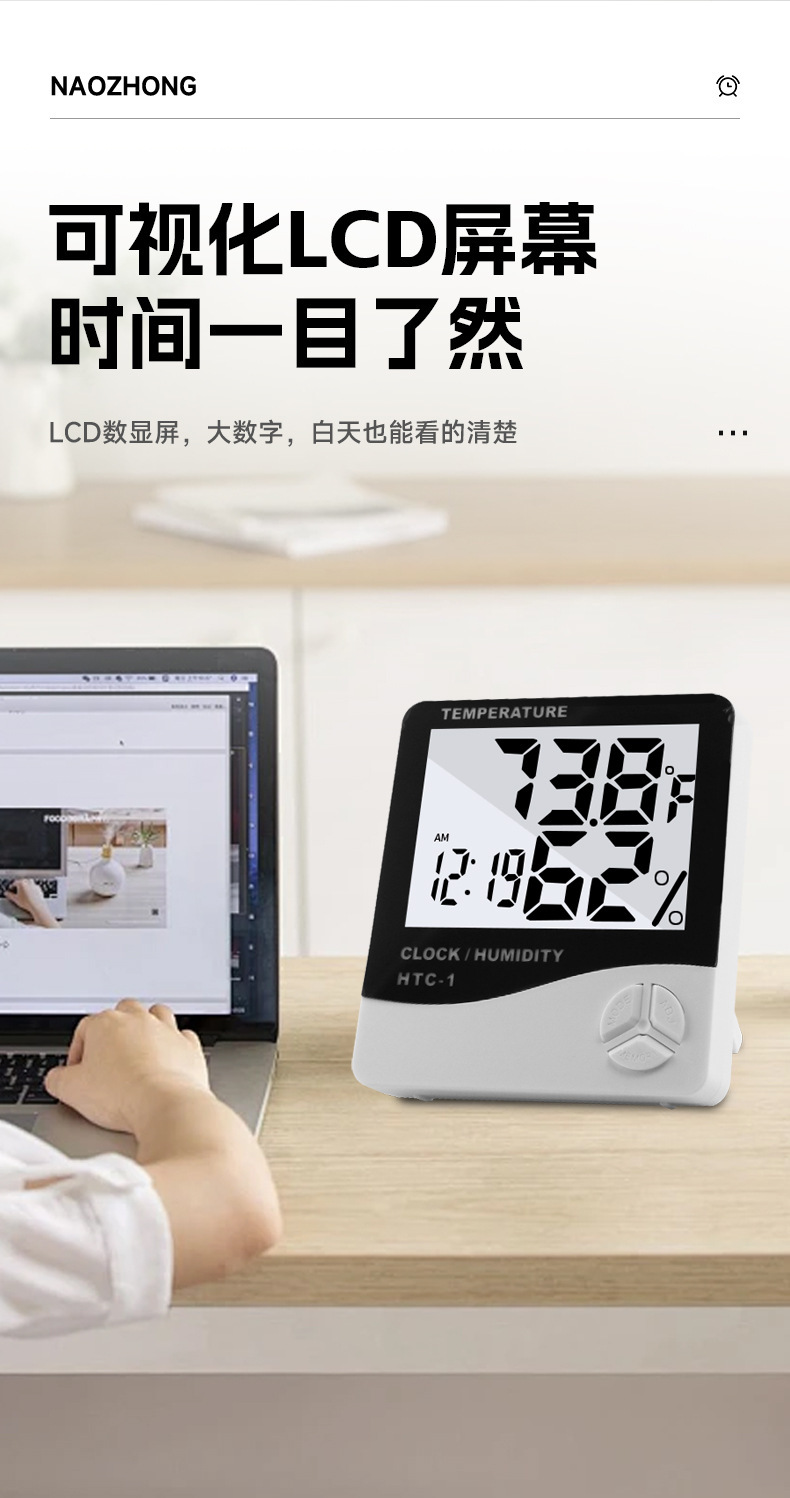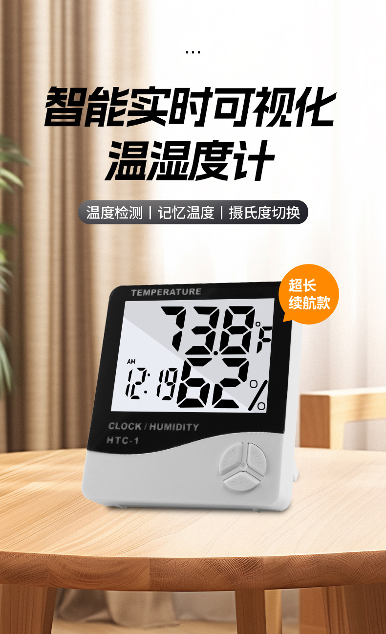 HTC-1室内电子温度计 家用大屏幕温湿度计礼品