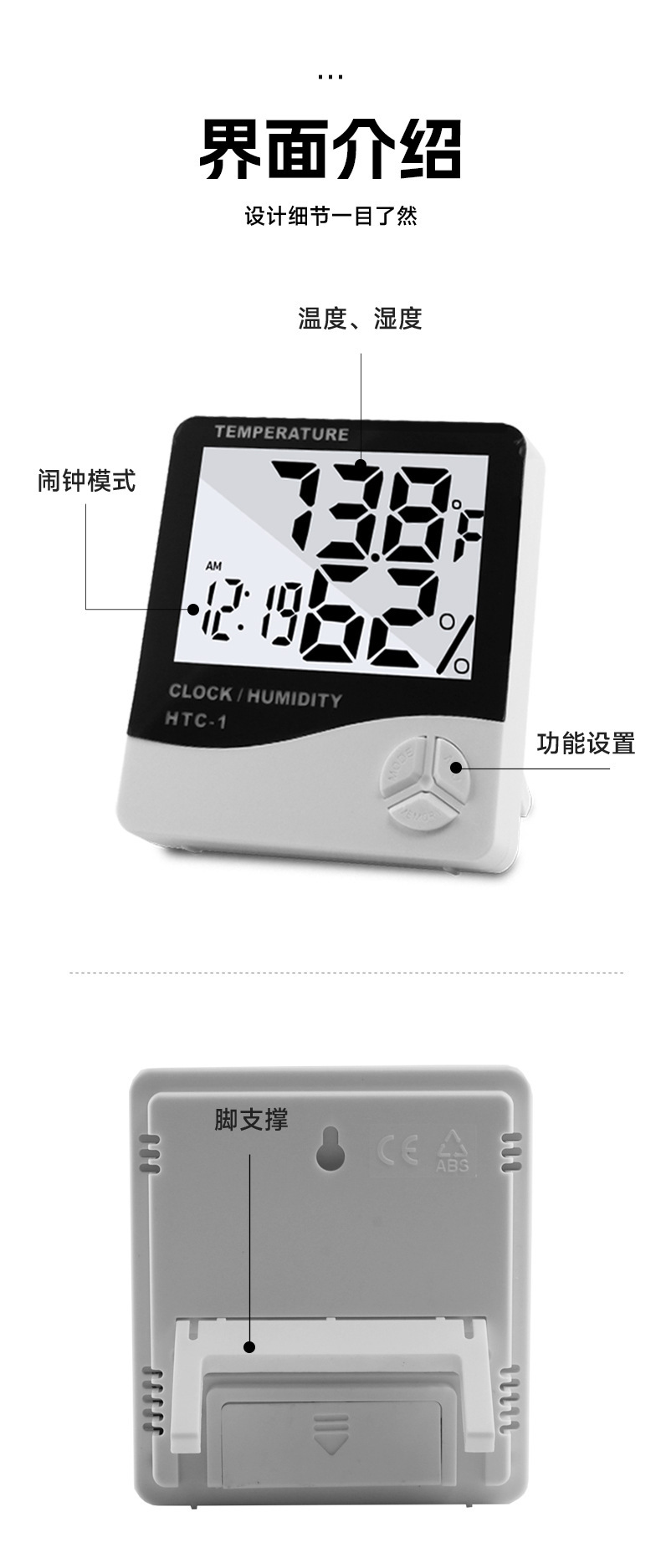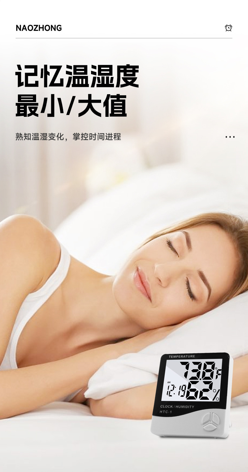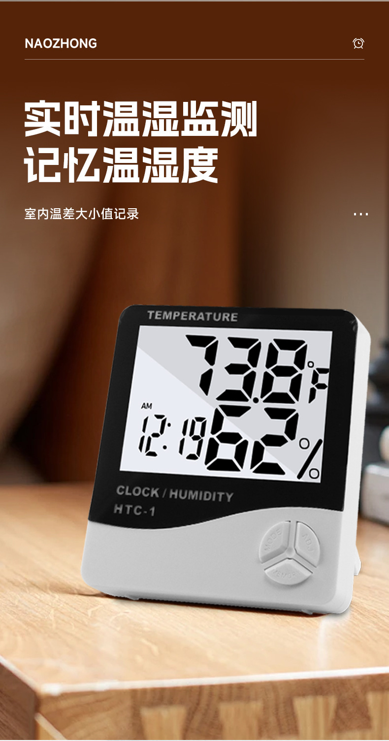 HTC-1室内电子温度计 家用大屏幕温湿度计礼品
