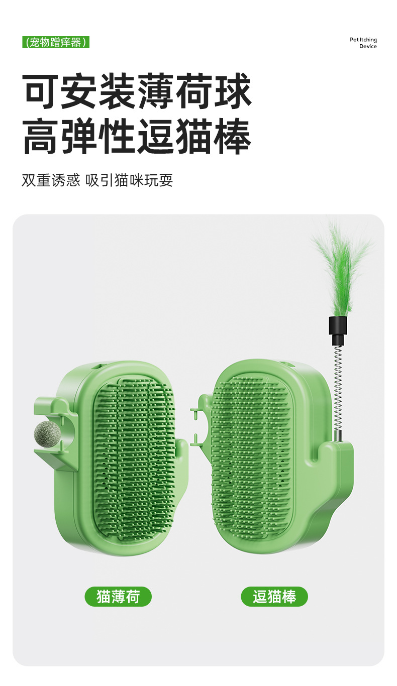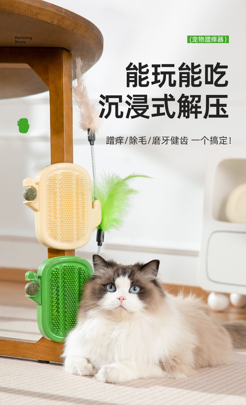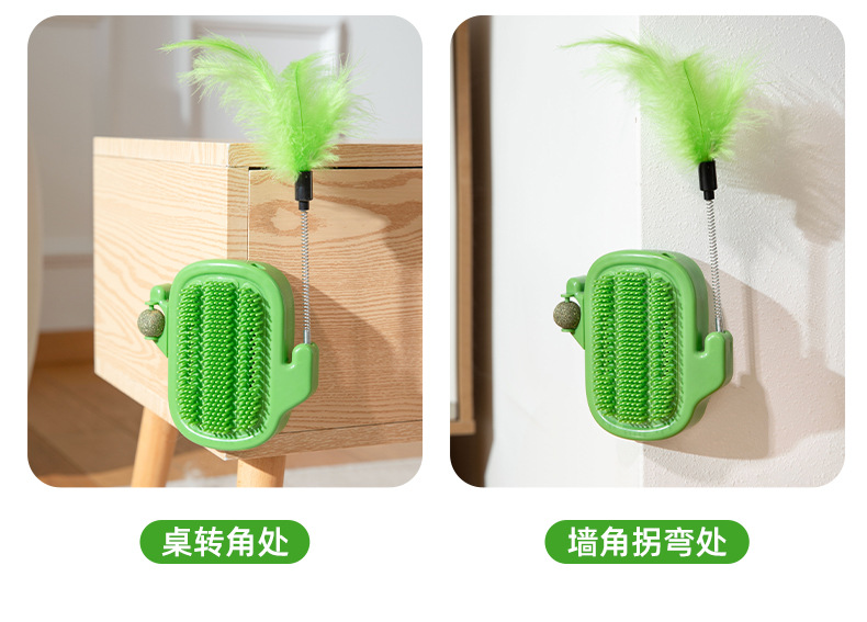 猫用おもちゃ、羽根付きかきむしり棒、ミントボール付き、壁やテーブルの脚に貼れる、漫画風