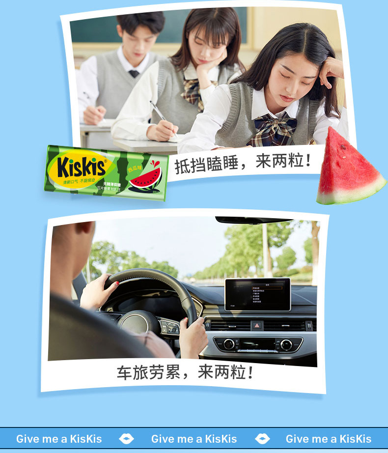 KisKis酷滋薄荷硬糖清新口气强劲清凉苹果味开车犯困便捷条装零食
