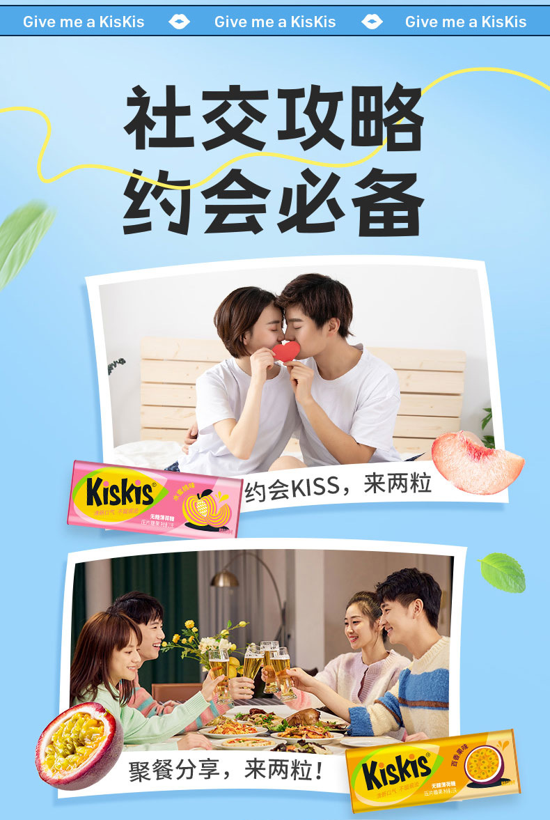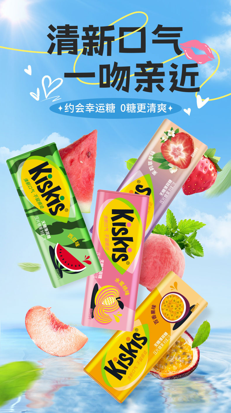 酷滋kiskis无糖薄荷糖接吻香体糖果约会随身清新口气零食铁盒