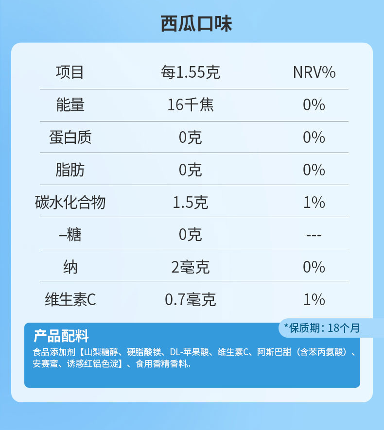 包装规格 茉莉草莓味23g(一个中盒15个),百香果味23g(一个中盒15个),水蜜桃味23g(一个中盒15个),西瓜味23g(一个中盒15个)