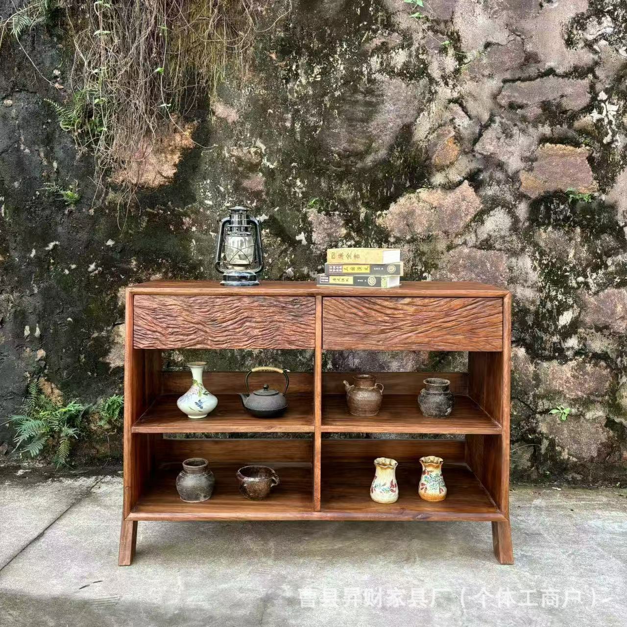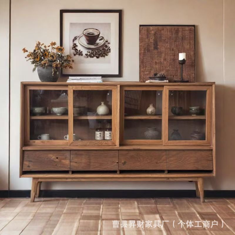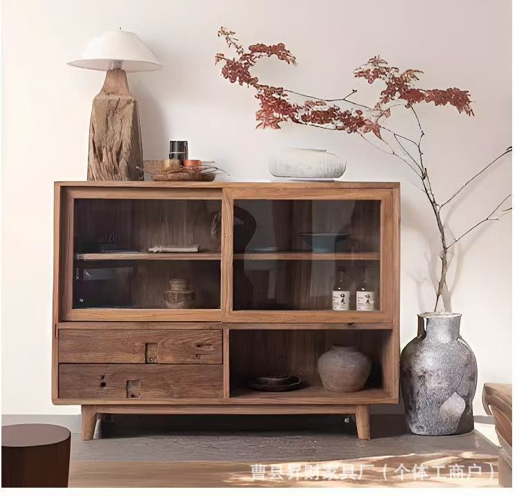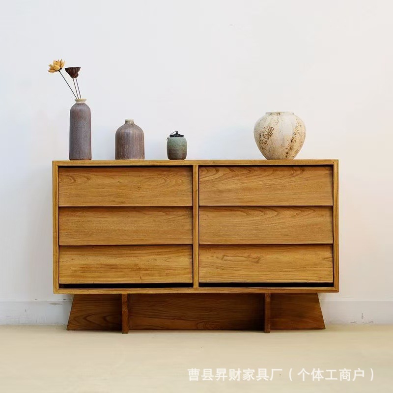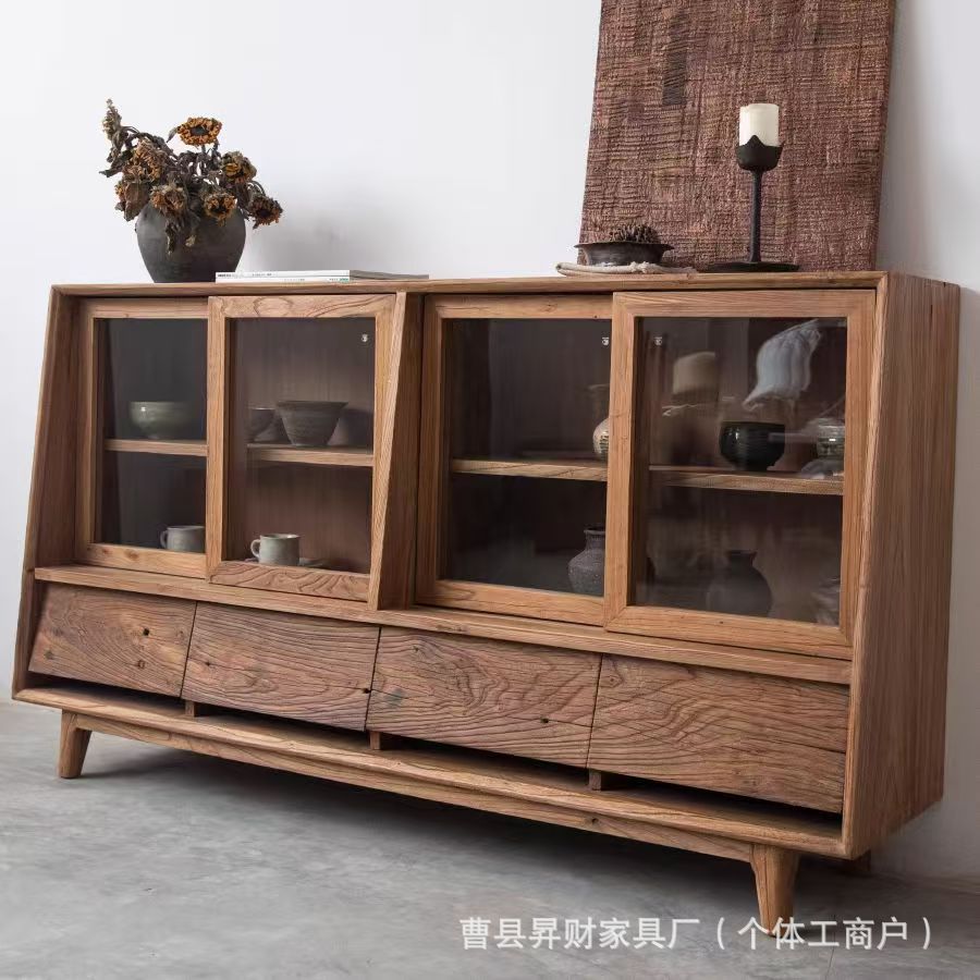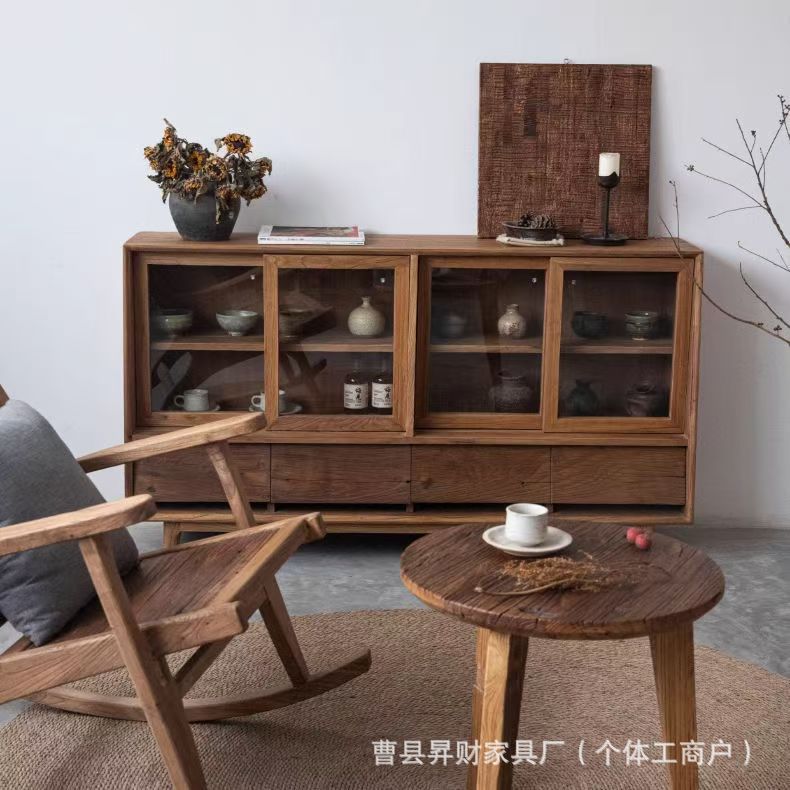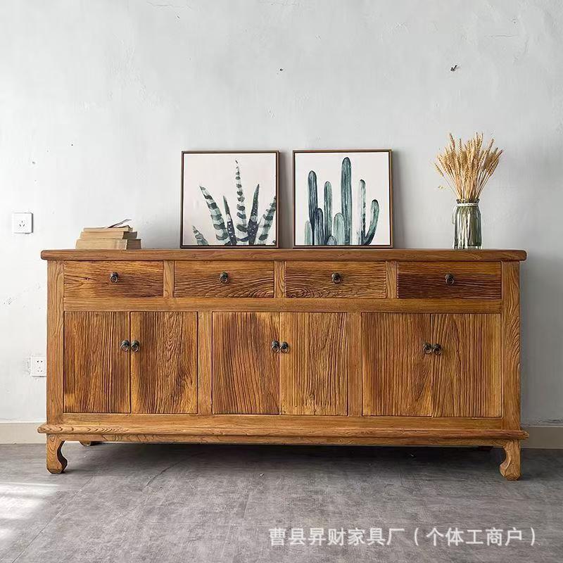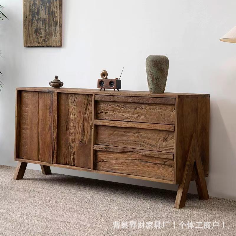 老榆木复古餐边柜诧寂风实木储物柜客厅收纳柜民宿玄关置物柜定金