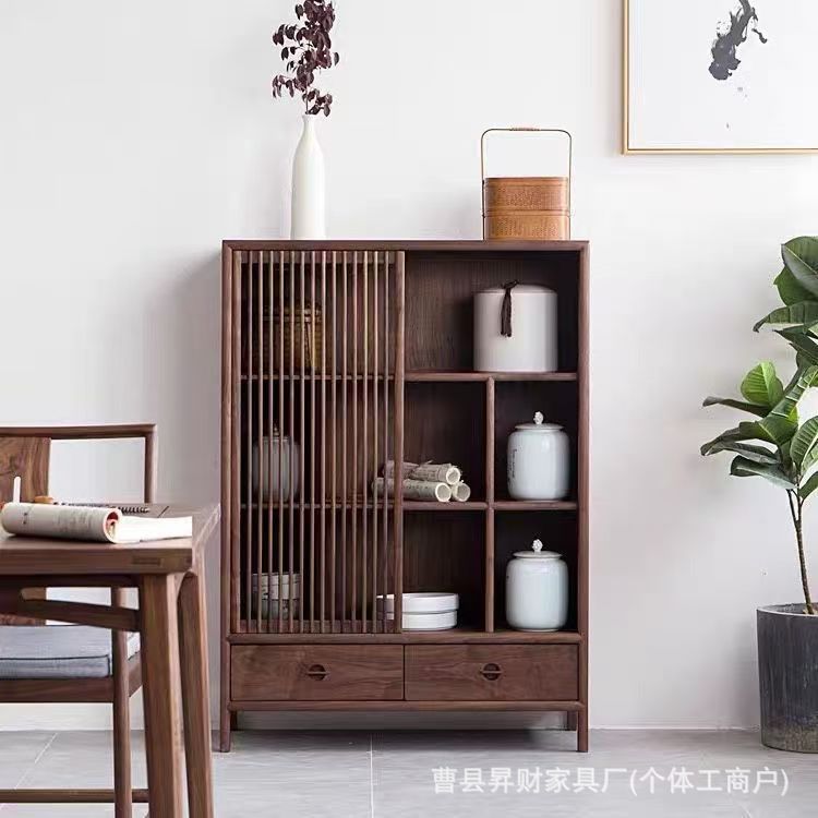 新中国式茶葉戸棚老楡木展示棚実木ロッカー茶室多宝閣サイドキャビネット客間本棚預金金