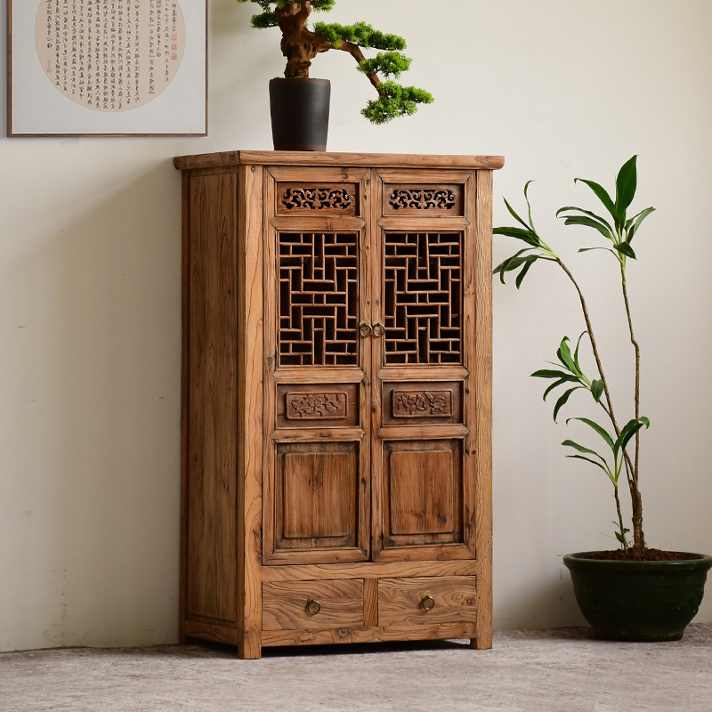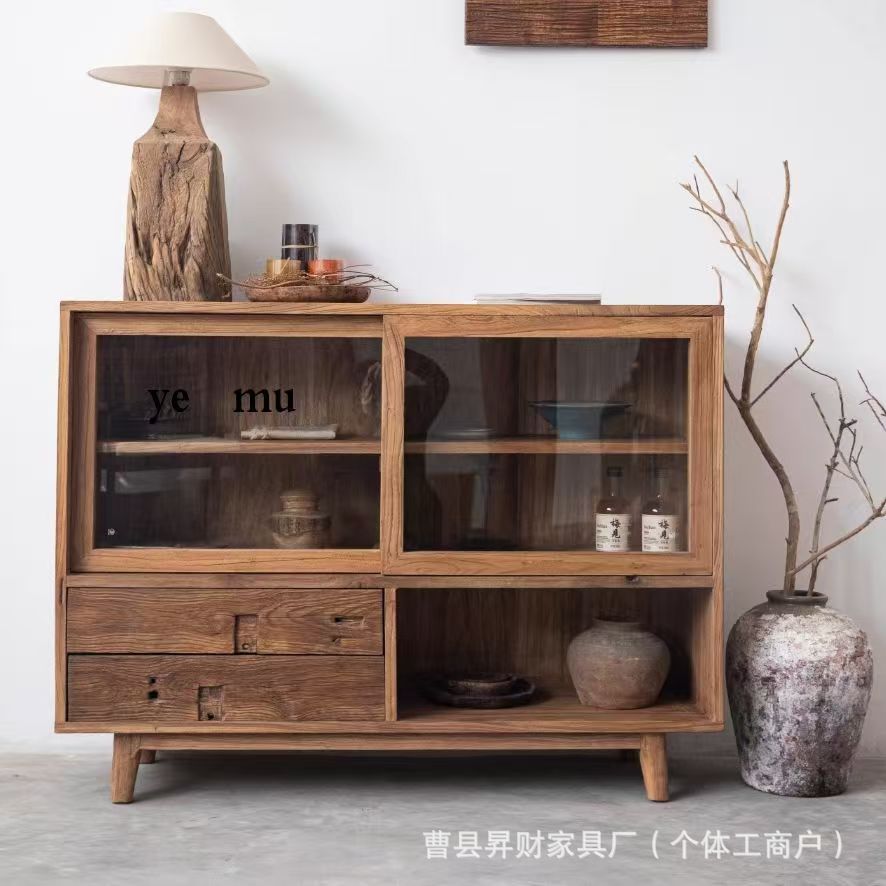 Chaji Feng サイドボード古いニレ材レトロディスプレイキャビネットリビングルーム中古玄関キャビネット B&B 茶室収納キャビネット