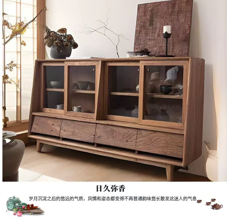 侘寂风老榆木餐边柜储物柜客厅玄关抽屉柜实木复古家具双开门斗柜