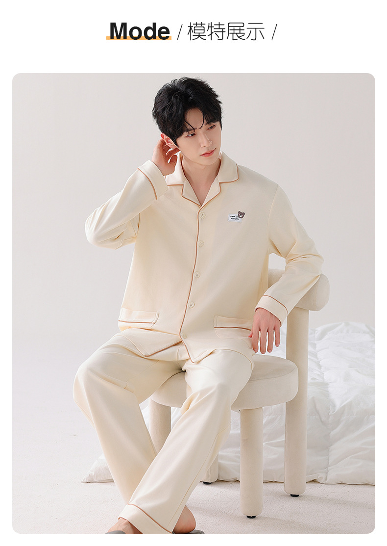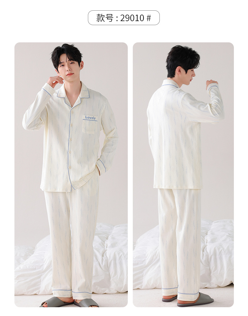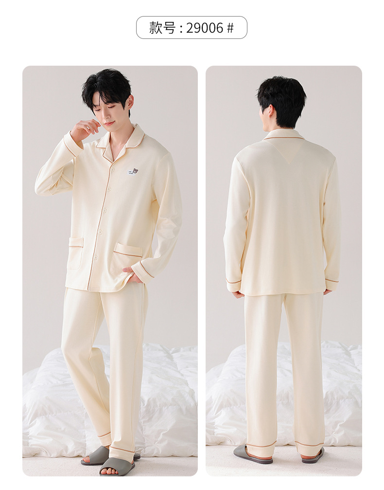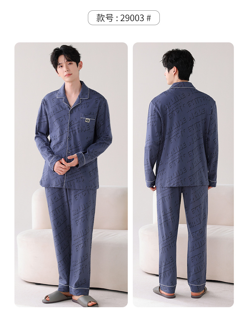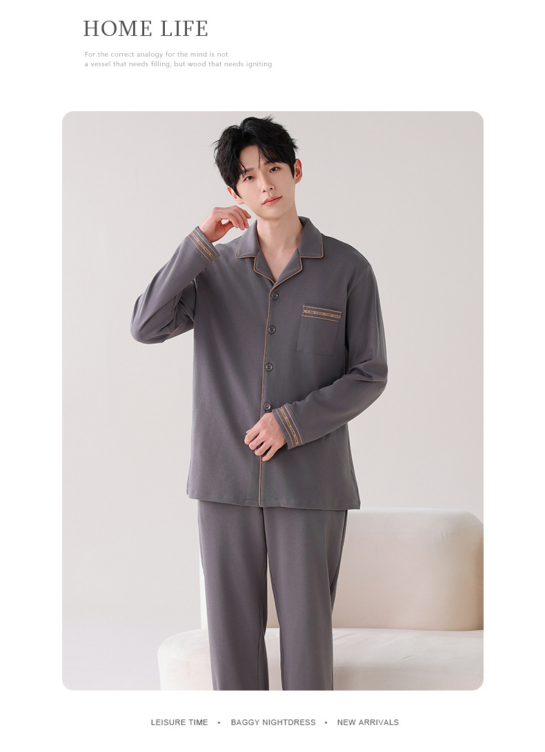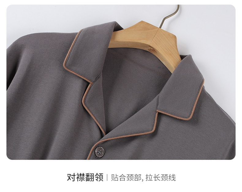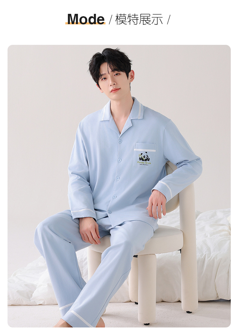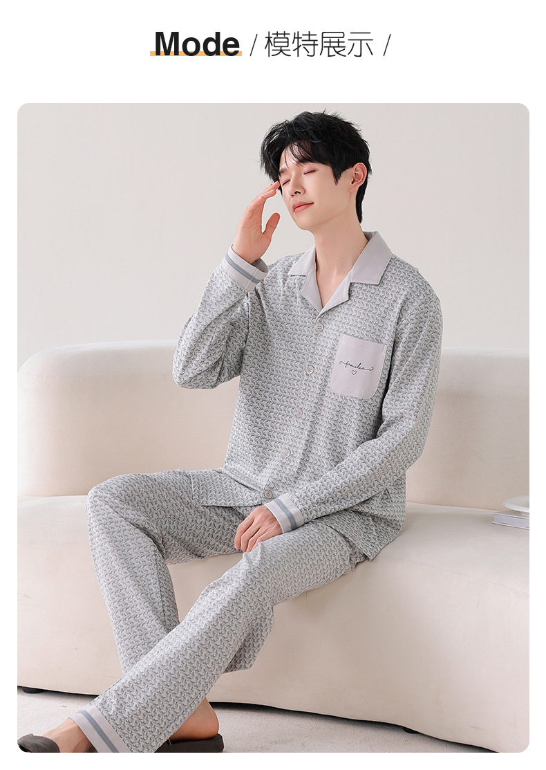 双面纯棉新款男睡衣长袖翻领开衫大码秋冬季可外穿全棉家居服套装