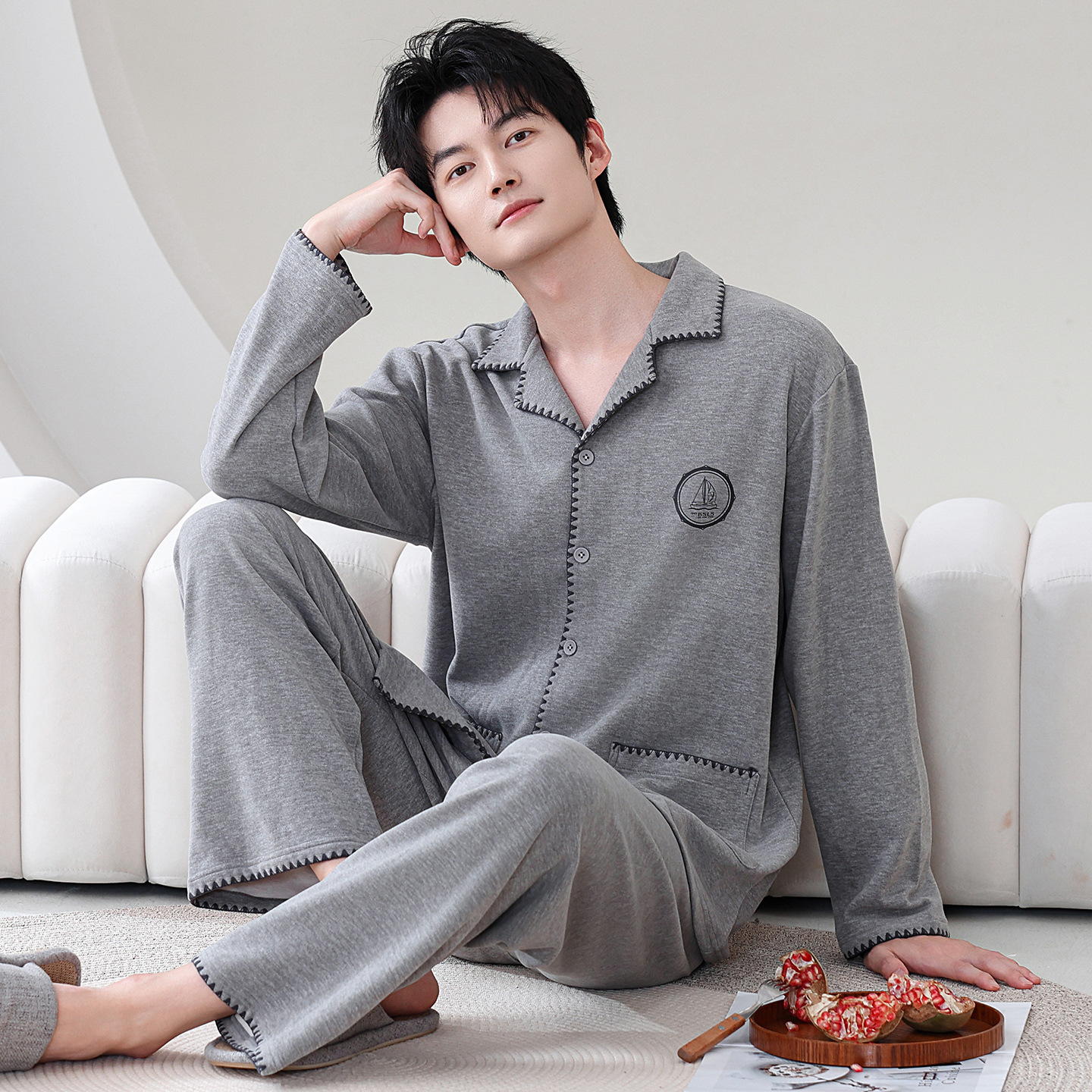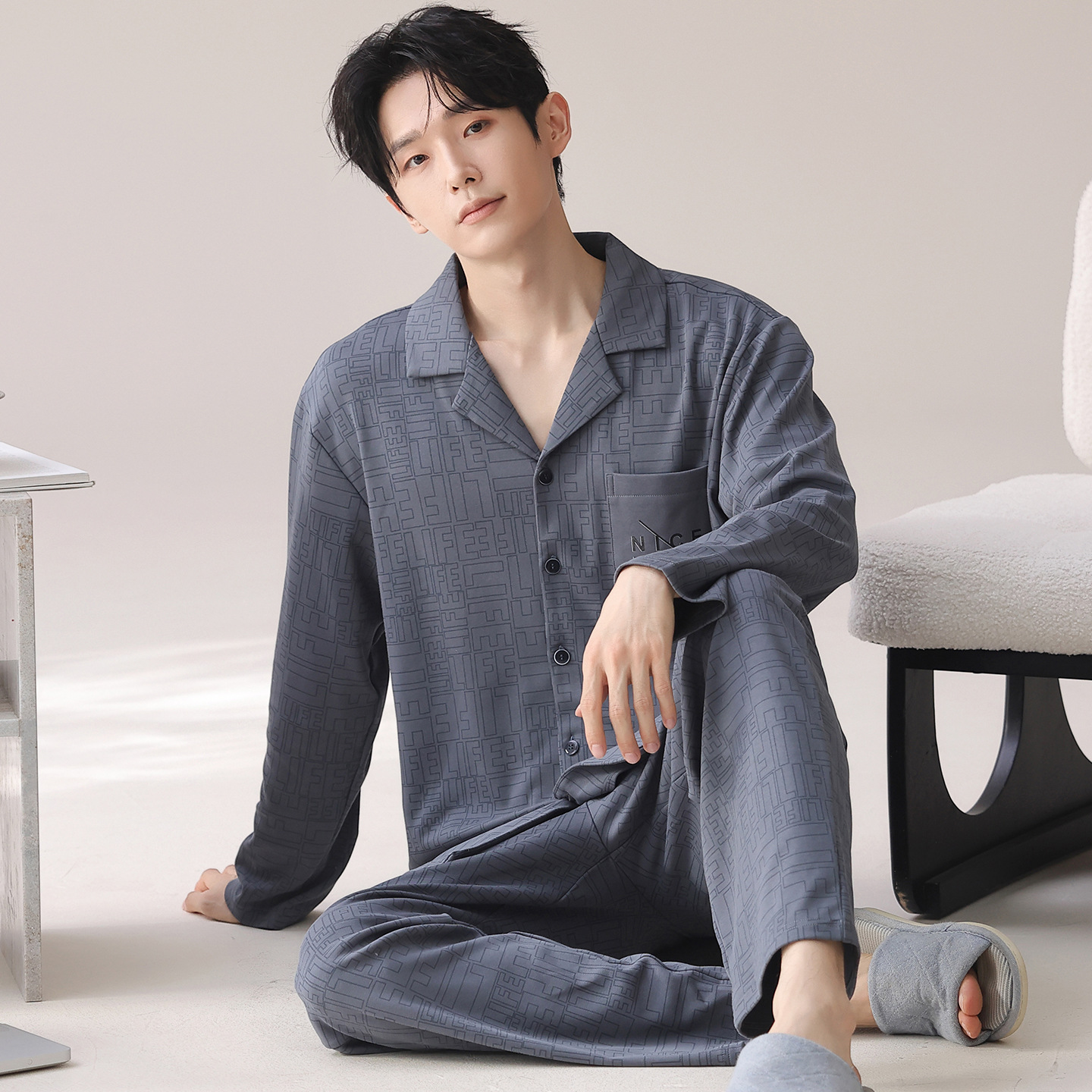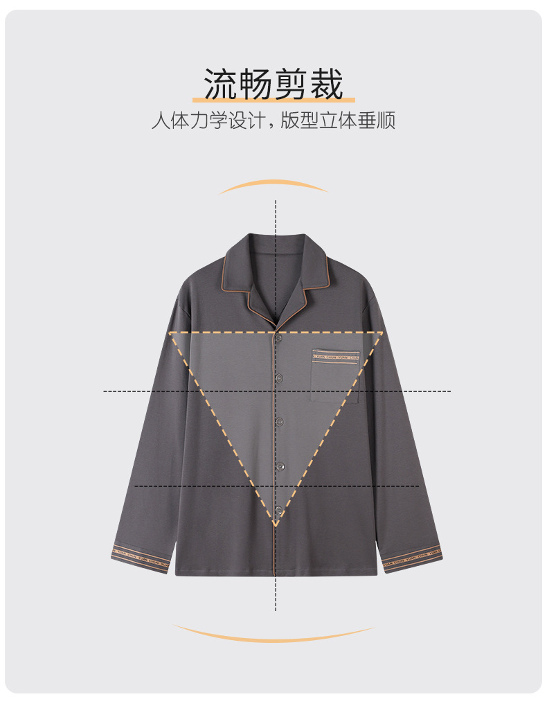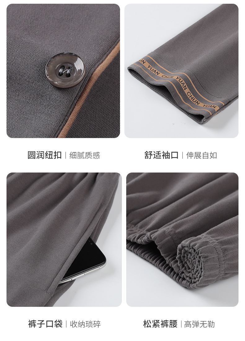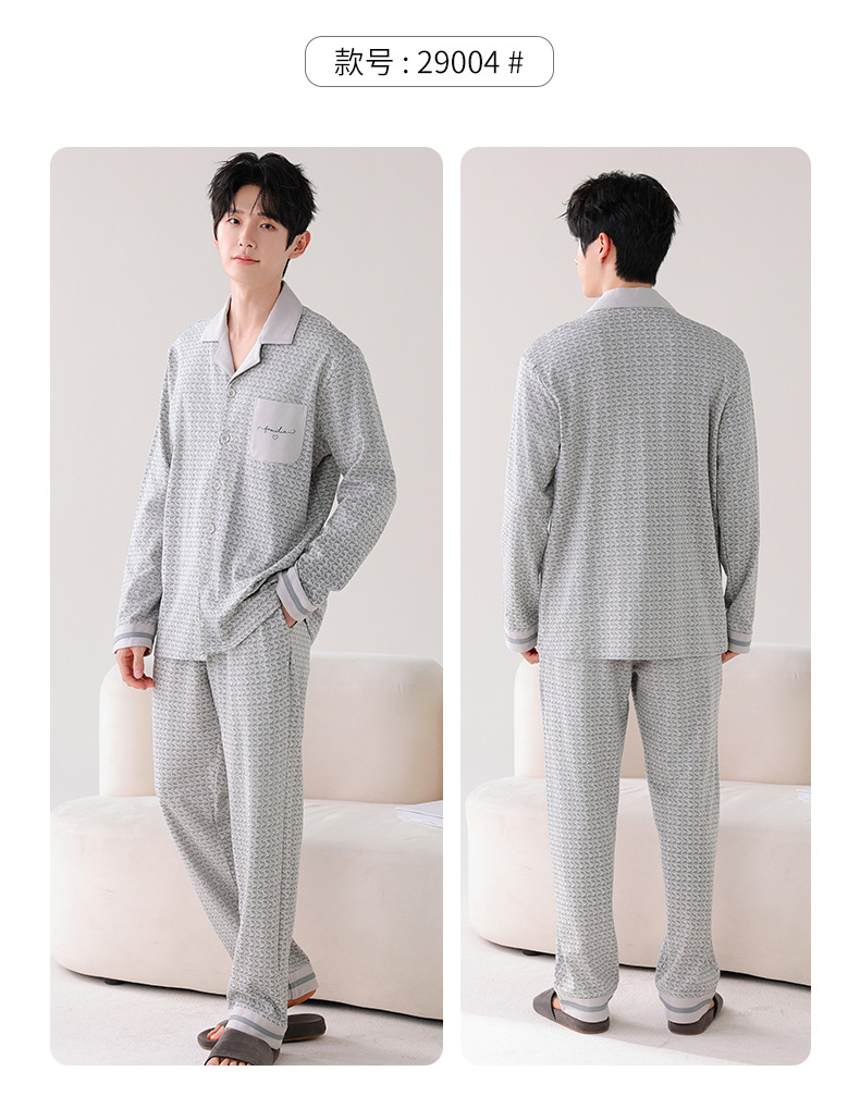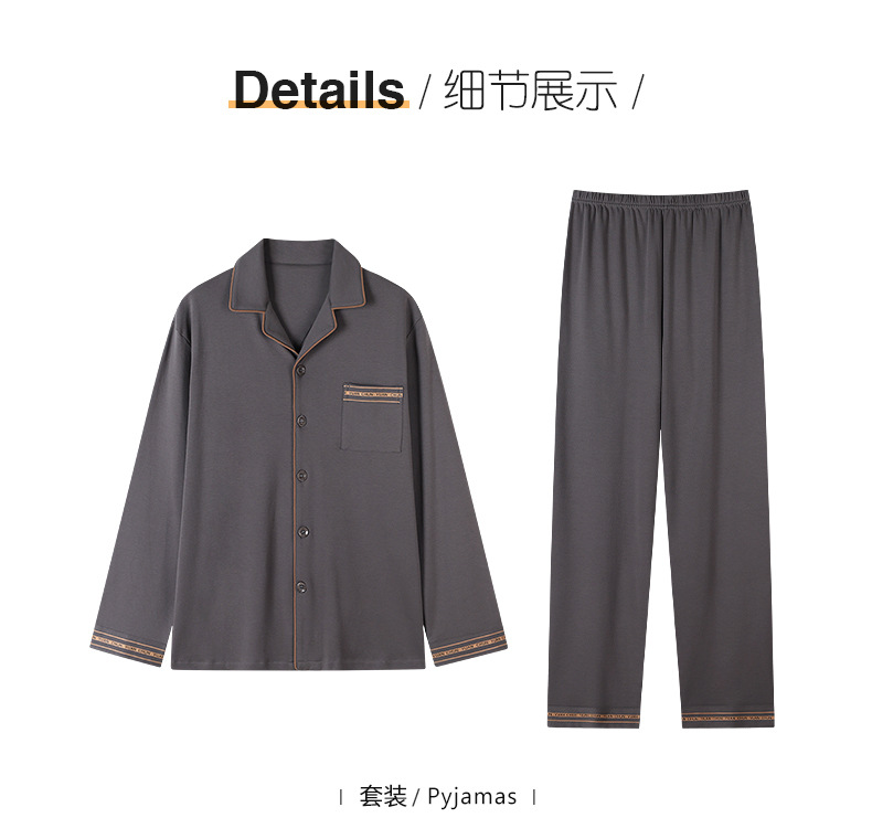 双面纯棉新款男睡衣长袖翻领开衫大码秋冬季可外穿全棉家居服套装