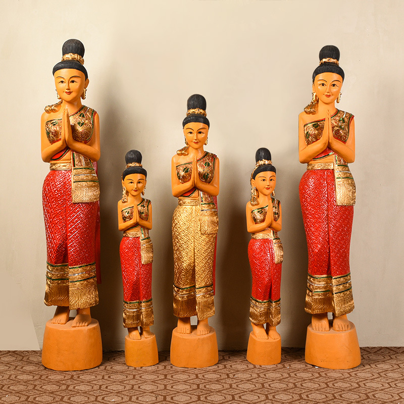 東南アジアスタイルの木彫りタイレストランウェルカム人形ソフト装飾タイスタイル人形装飾品