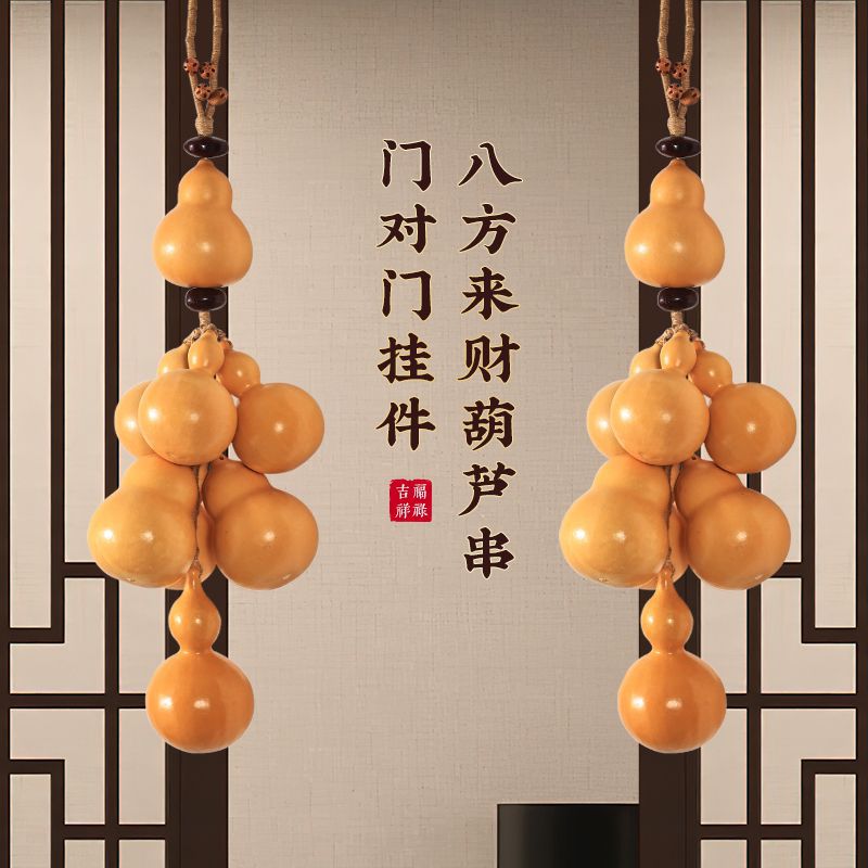 五帝銭ひょうたんペンダント、ドアツードア天然小ひょうたん、リビングルーム玄関ドア装飾、祝福と祝福のペンダント