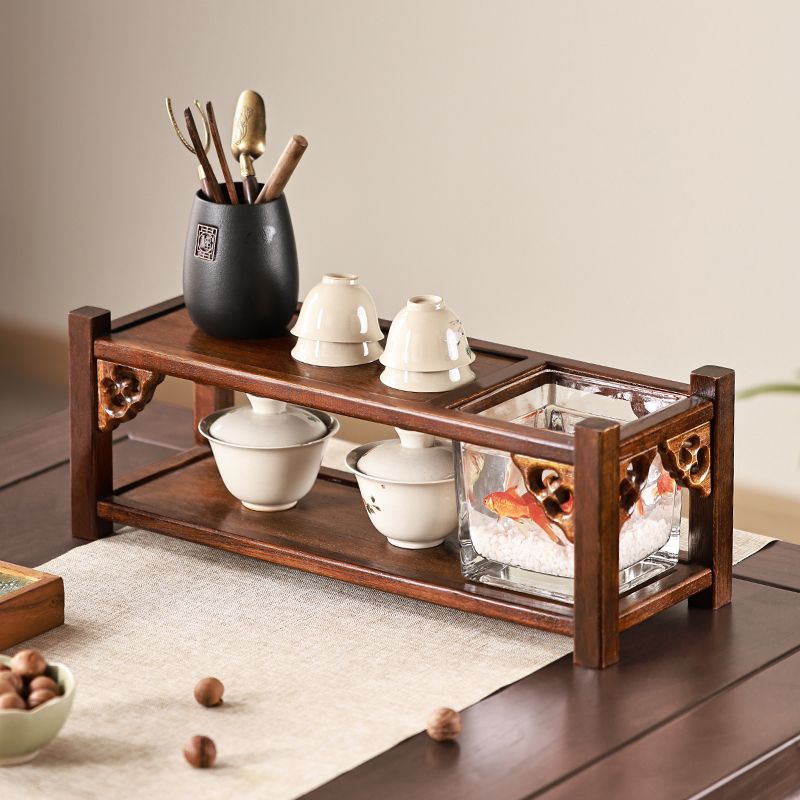 新中国式実木デスクトップ水景花棚博古棚茶器収納茶室装飾茶卓棚
