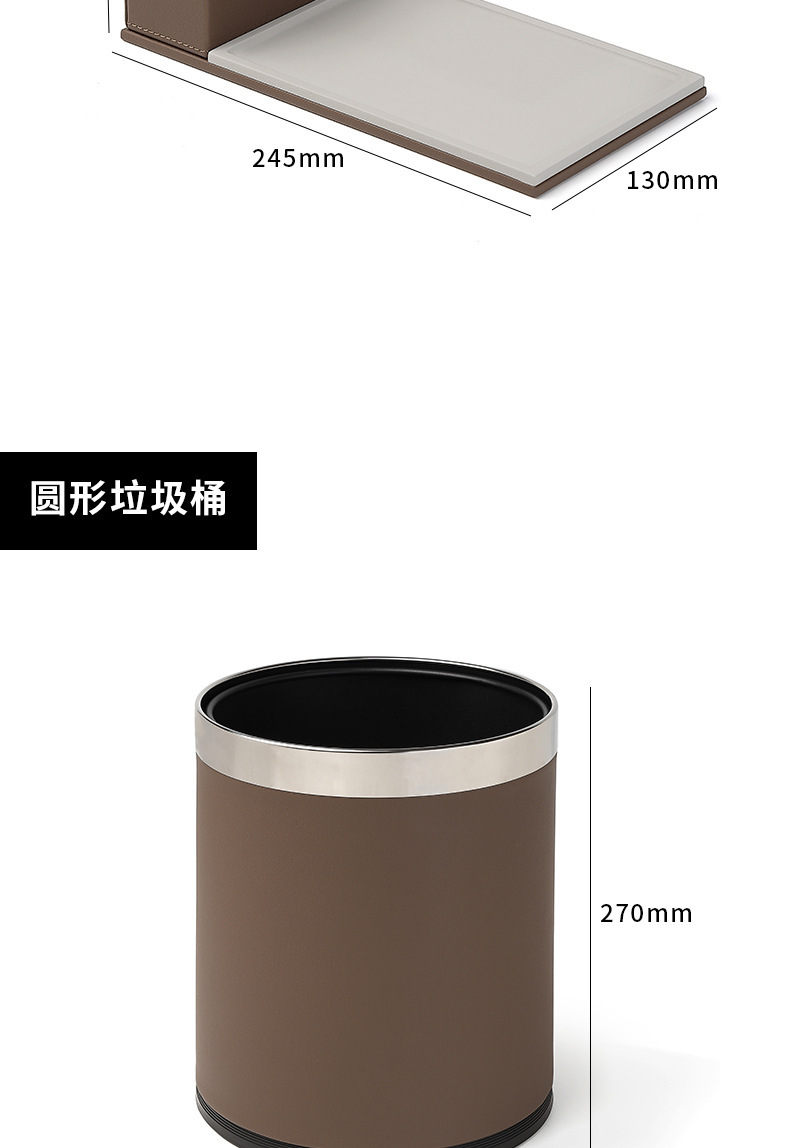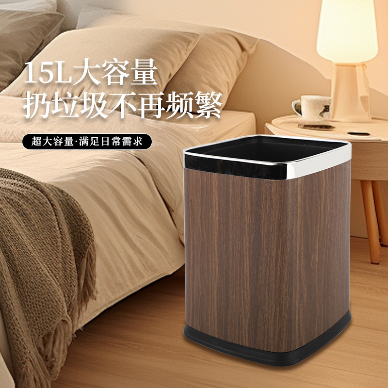 ゴミ箱皮革木目高級家庭用中国式ゴミかご客間大型金属厚手ホテル専用