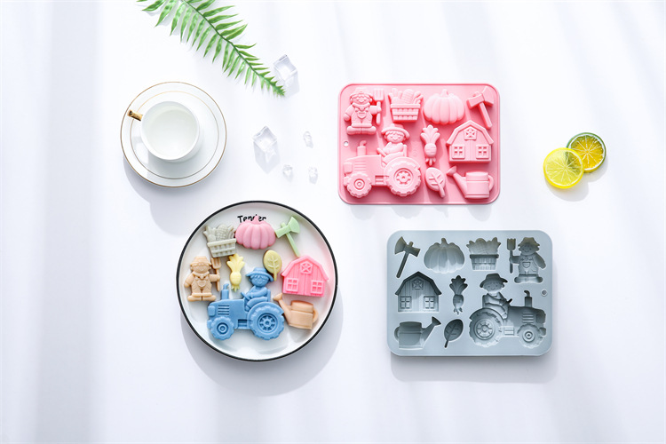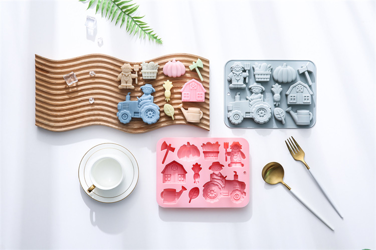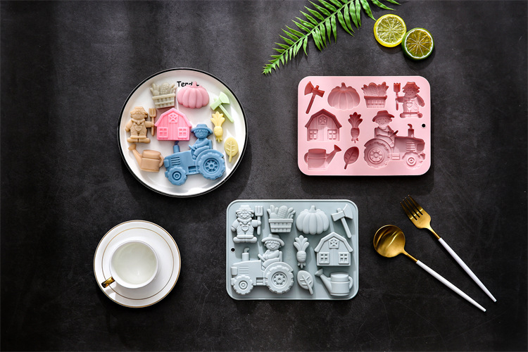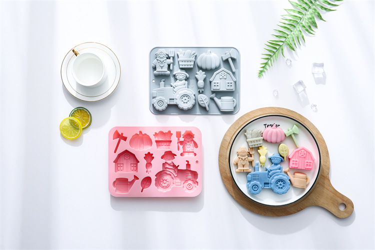 スポット9連農場テーマ造形シリコン金型焙煎ツールケーキ金型氷滴ゴムチョコレート金型