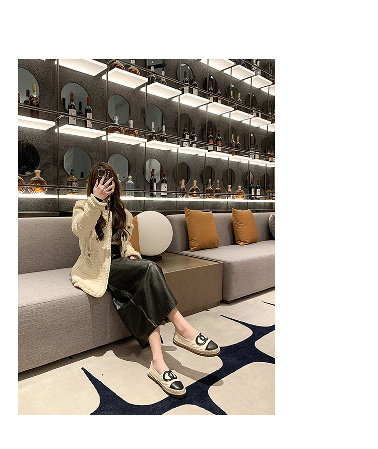 フラットソールの小さな香りの黒のつま先サンダル婦人靴 2025 春夏スカート付きフレンチポインテッドトゥラインストーンシューズ