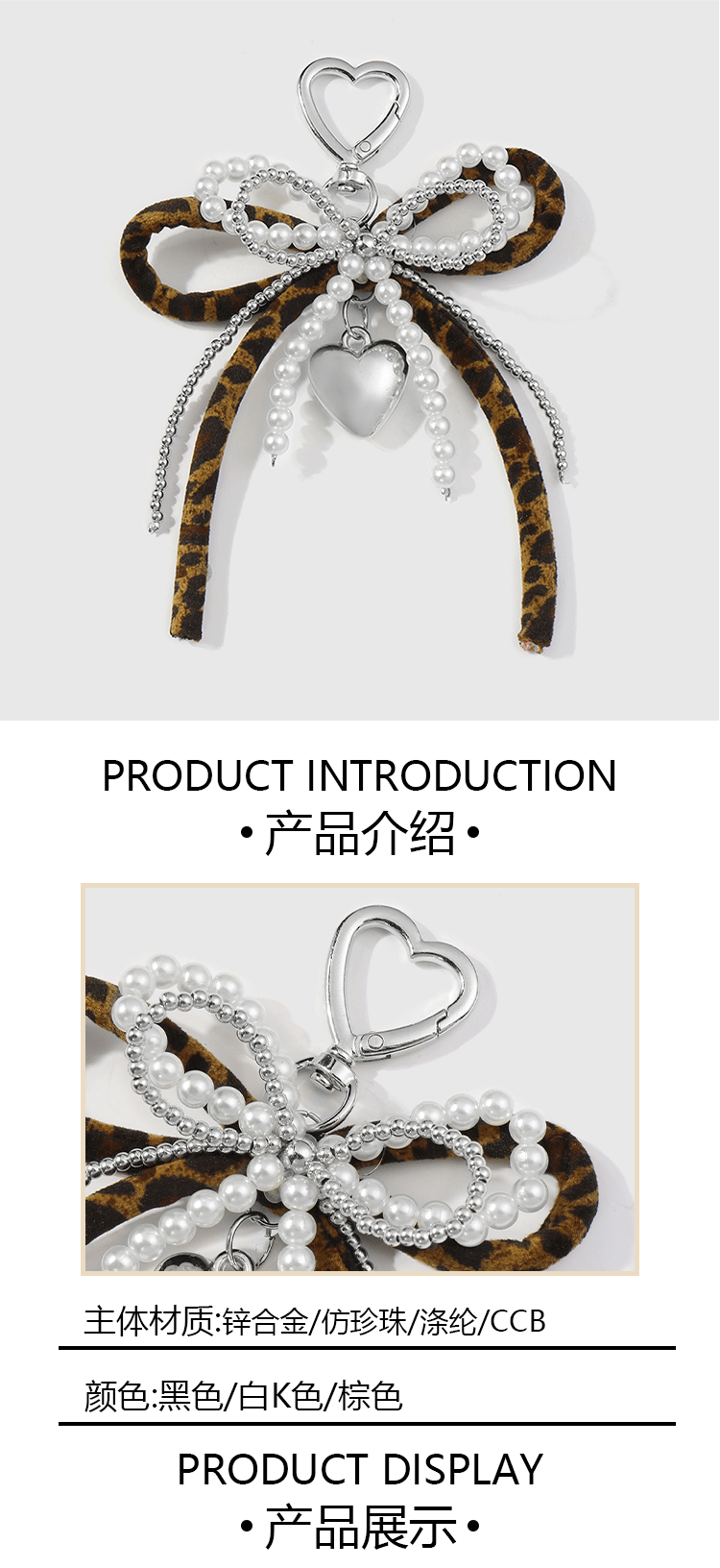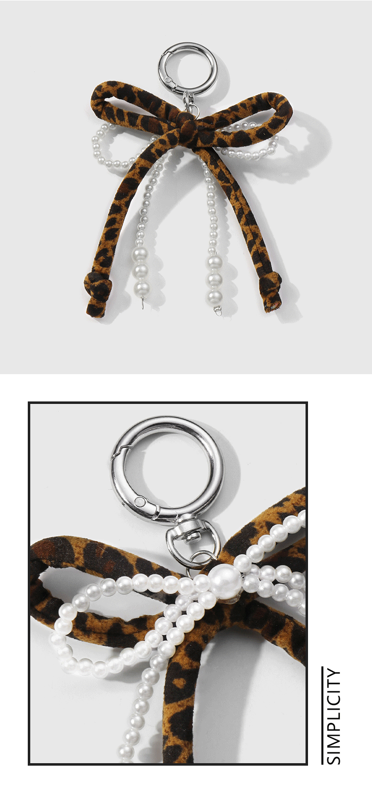国境を越えた爆発金y2k個性ファッションレトロな手作りビーズ白模造真珠CCB豹紋蝶ネクタイキーホルダー