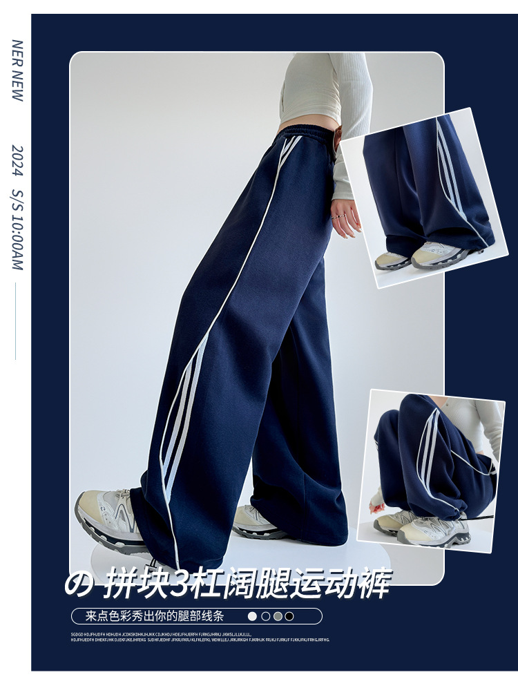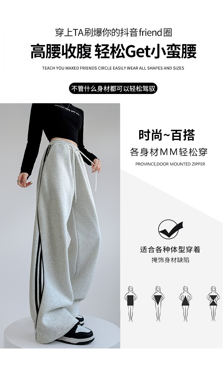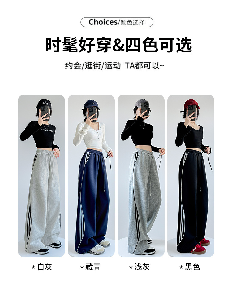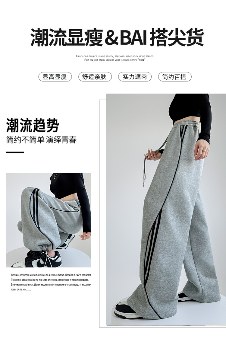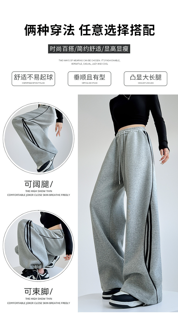 アメリカンストライプスウェットパンツ女性のための春と秋2025新しいハイウエストスリムワイドレッグパンツカジュアルルーズストレートスポーツパンツ