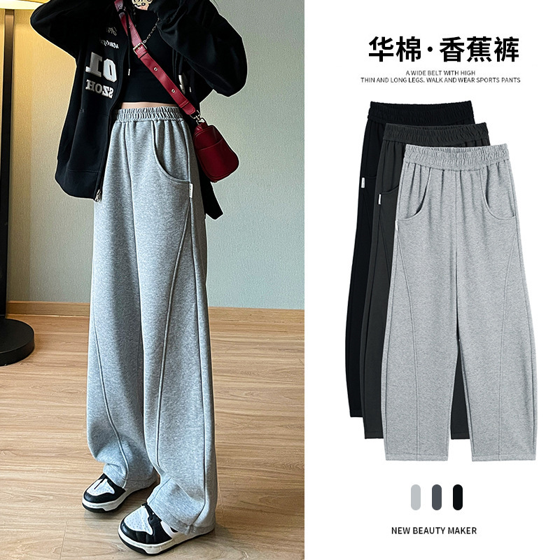 白とグレーのルルと同じスタイルのパンツ女性の春と秋の新しいルーズナローワイドレッグパンツスウェットパンツスリムストレートスポーツパンツ