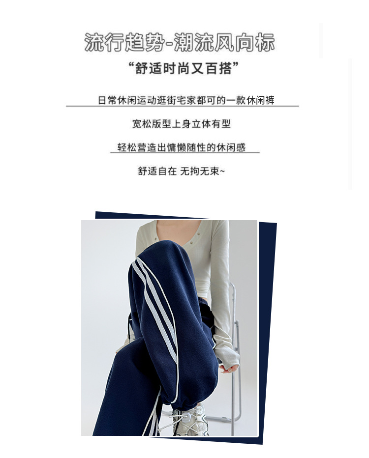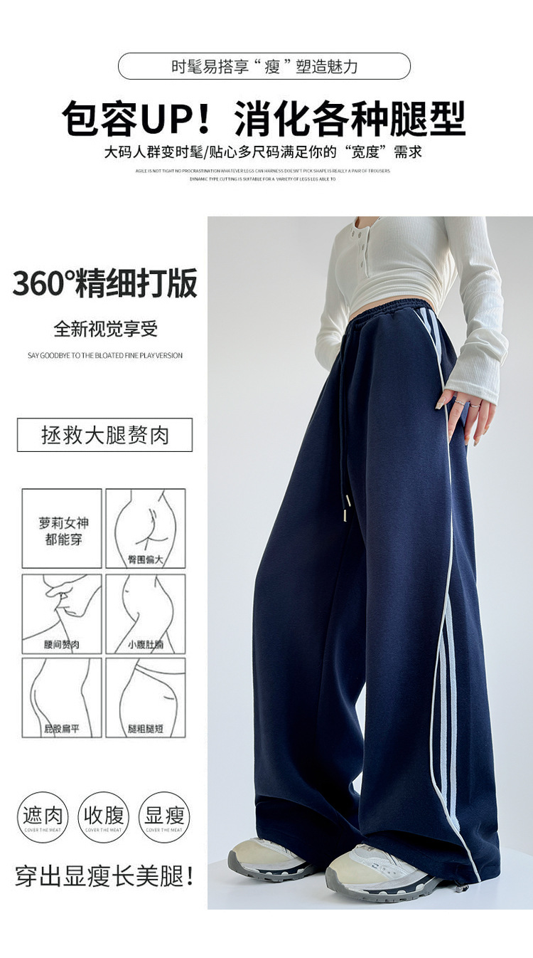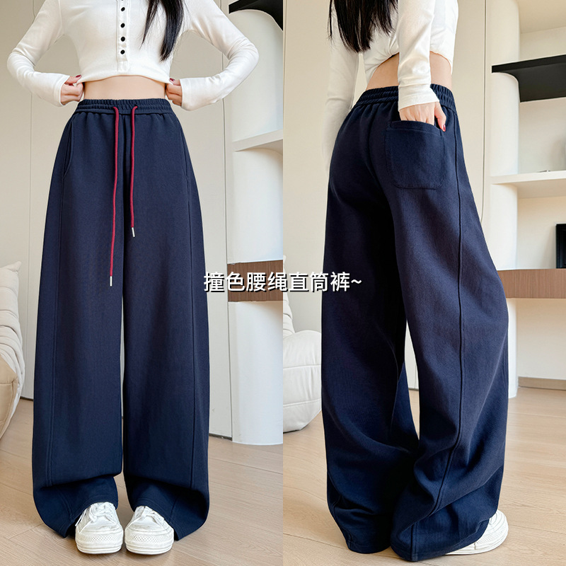 高品质藏青直筒裤女秋冬裤子新款小个子宽松运动裤高腰休闲阔腿裤