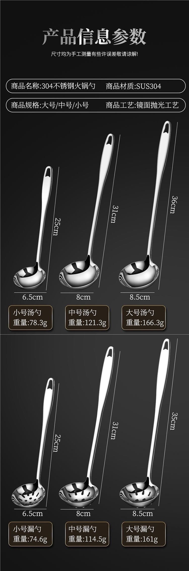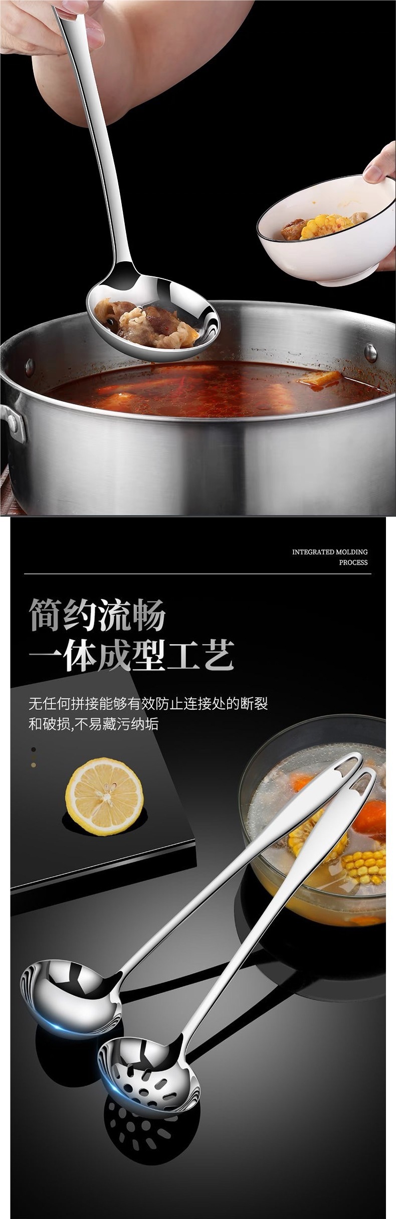 食品級ステンレス家庭用長柄盛湯スプーン鍋漏れスプーン隔油スプーンセットの大型厚さ