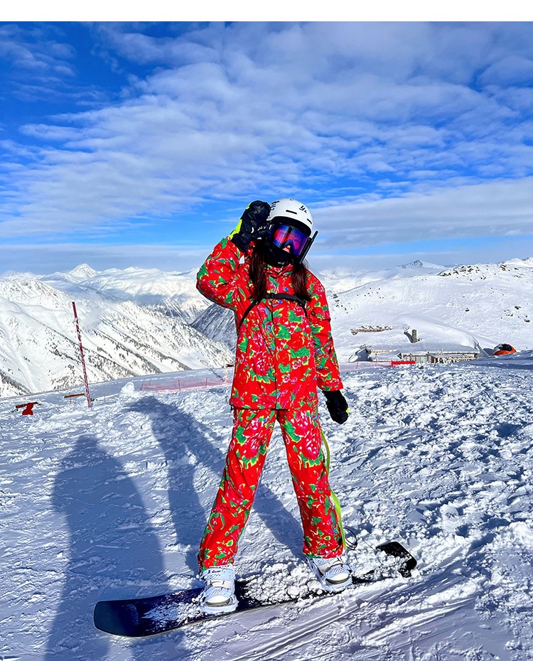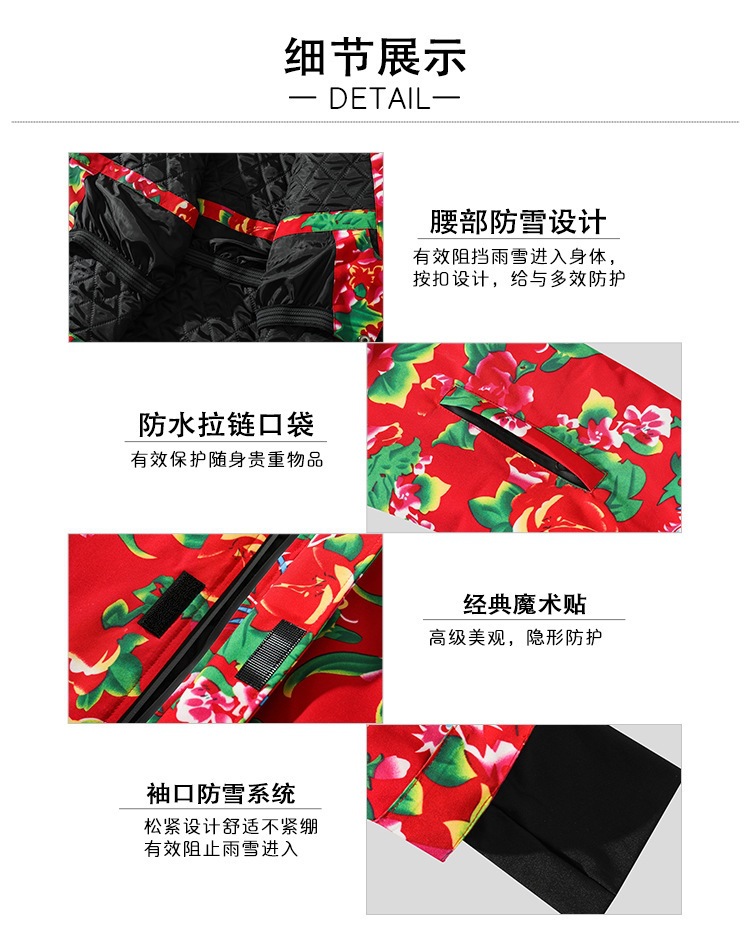 秋冬の東北の大きい花の上着のスキー服の保温のスーツの女性の屋外のキャンプ服の東北の旅行の保温の上着のスーツ