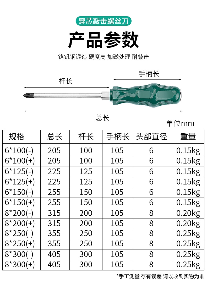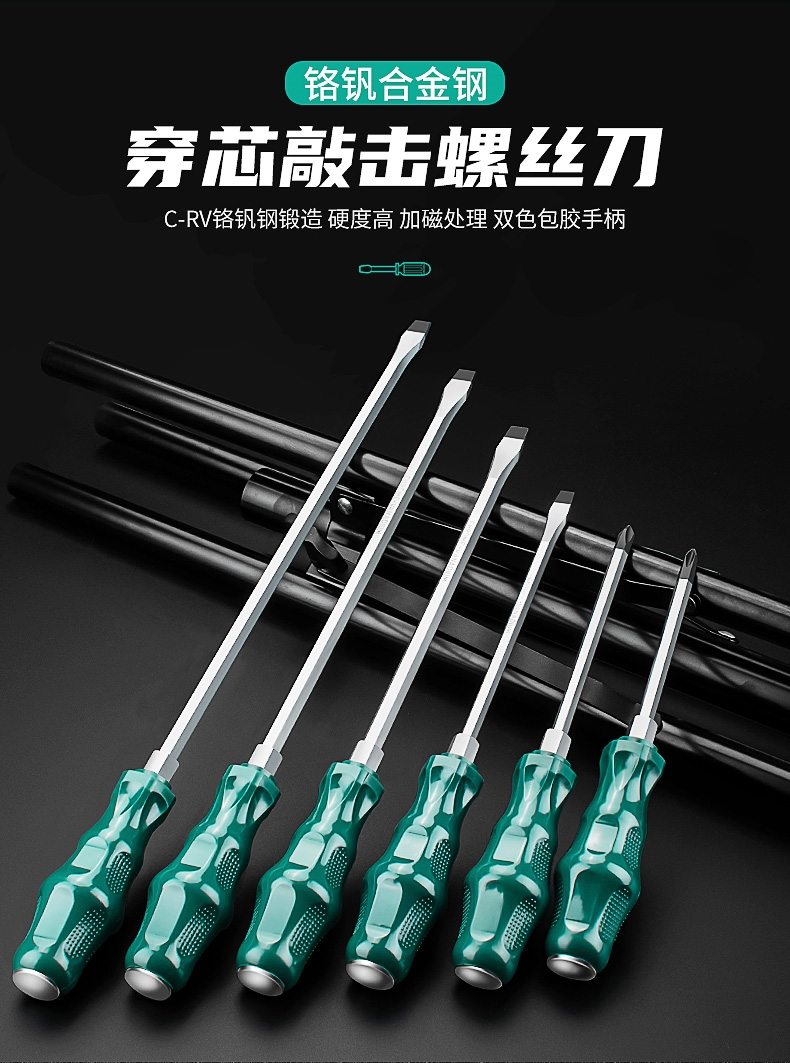 拓森穿心ドライバー十字一字ドライバー平口梅ドライバーは手動工具を叩くことができます。