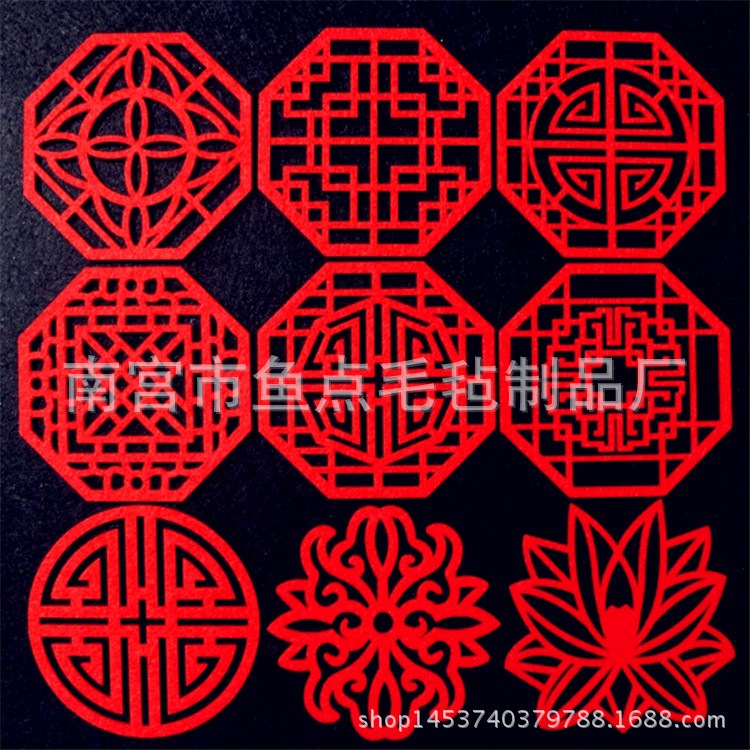 フェルトのお茶のコースターの断熱吸水の伝統的な要素の福の字の寿の字のフェルトの創意のコースターは壺のクッションの如意の祥雲を養います。
