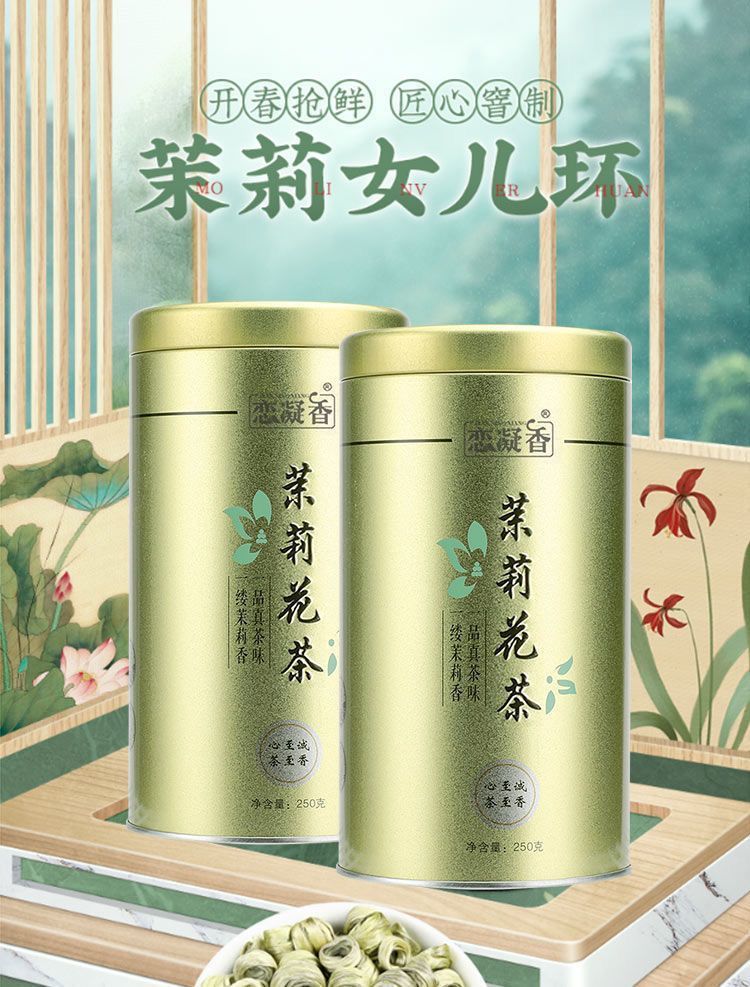 恋凝香ジャスミン玉螺王九特級ジャスミン茶葉高級若芽濃香耐泡型贈答缶