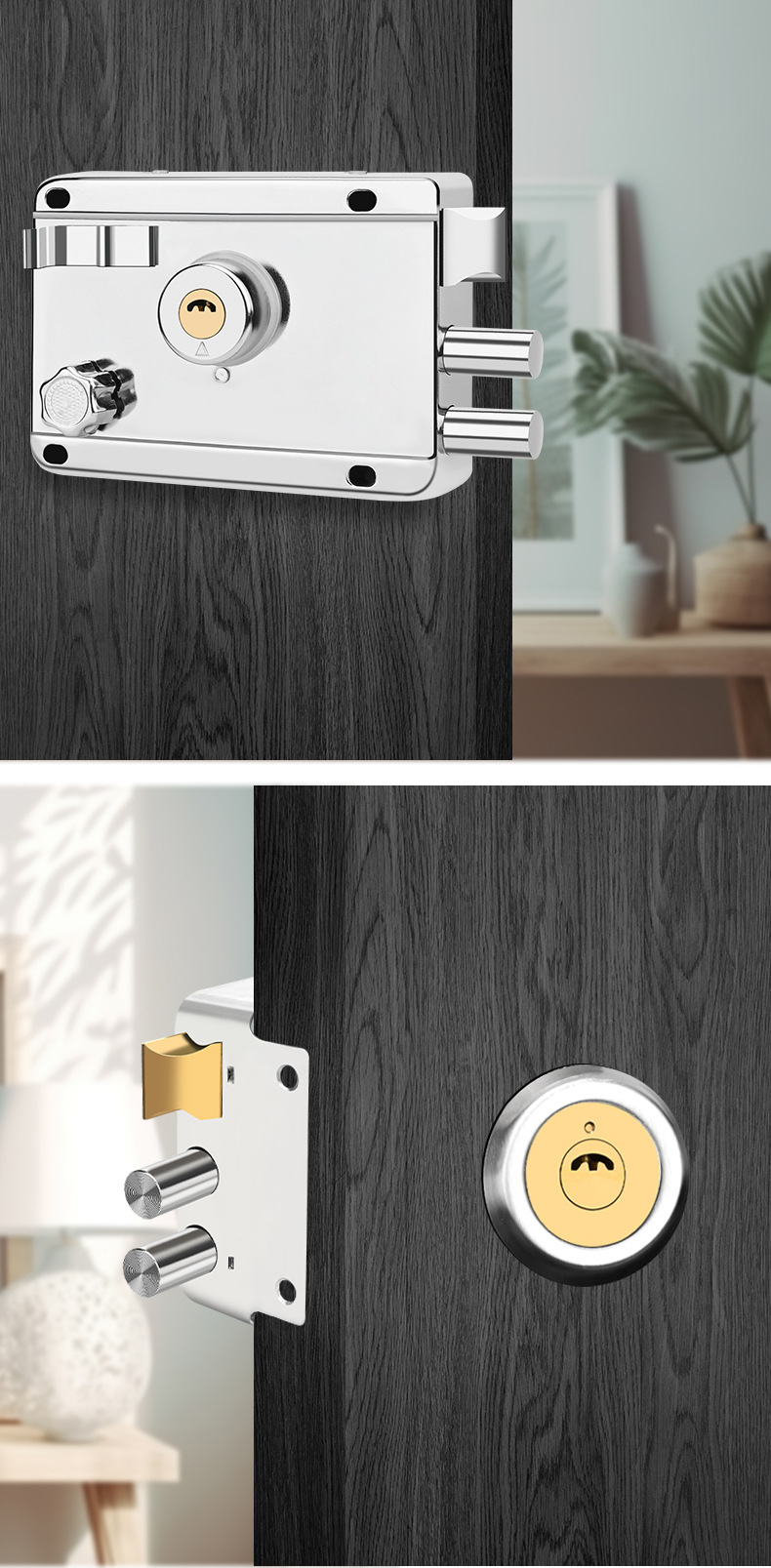 ステンレス外装ドアロック家庭用汎用型旧式防犯ドア鉄門室内木門寮錠具
