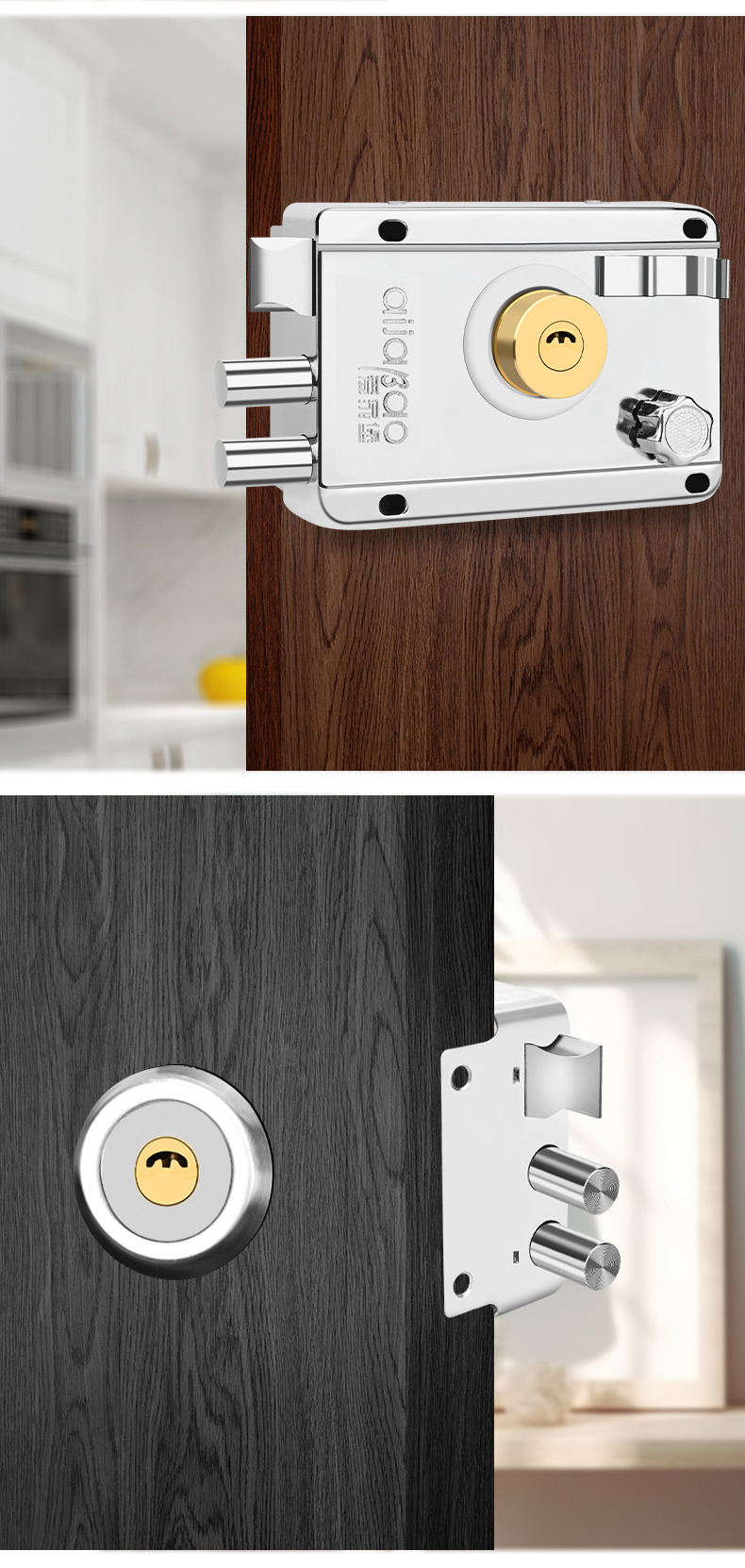 外装ドアロック家庭用玄関旧式防犯ドアロック木製ドア車庫ドア三日月防犯ロック芯保険ロック