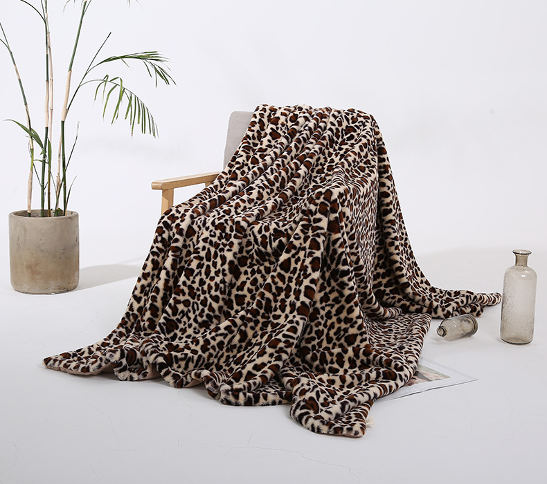 ヒョウ柄ブランケットプリント模造ウサギの毛皮ベッドブランケットソファカバーブランケット小さなブランケット両面厚みのある昼寝ブランケットカバーブランケット