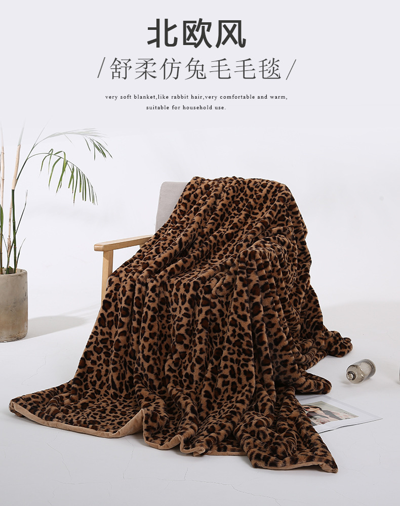 新款亚马逊热卖豹纹毛毯兔兔绒宝宝毯子水晶绒短毛绒午睡沙发盖毯