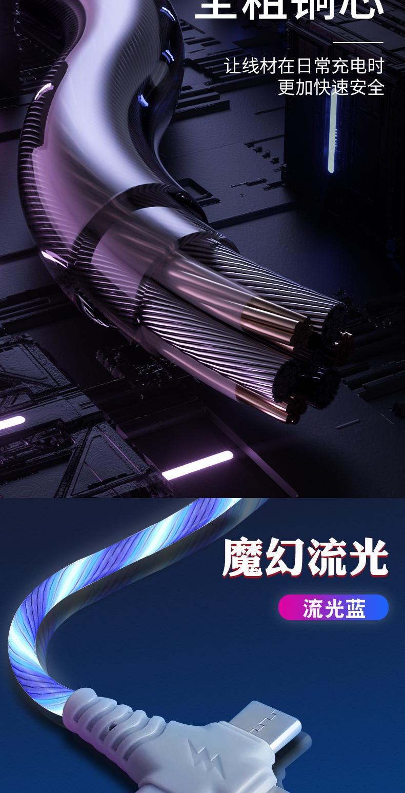 ストリーマ発光ケーブルはアップル15華為急速充電ケーブルtype-c車載led流動1 m2mを適用する