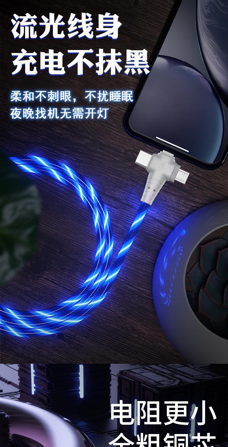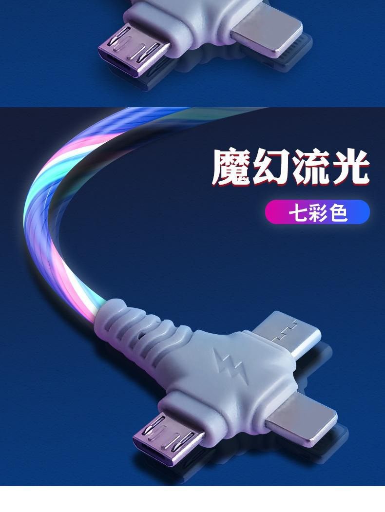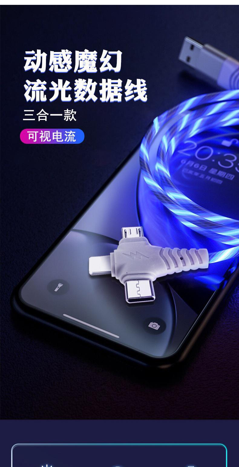 流光三合一快充数据线数据传输适用苹果华为小米安卓手机type-c线