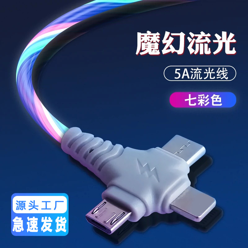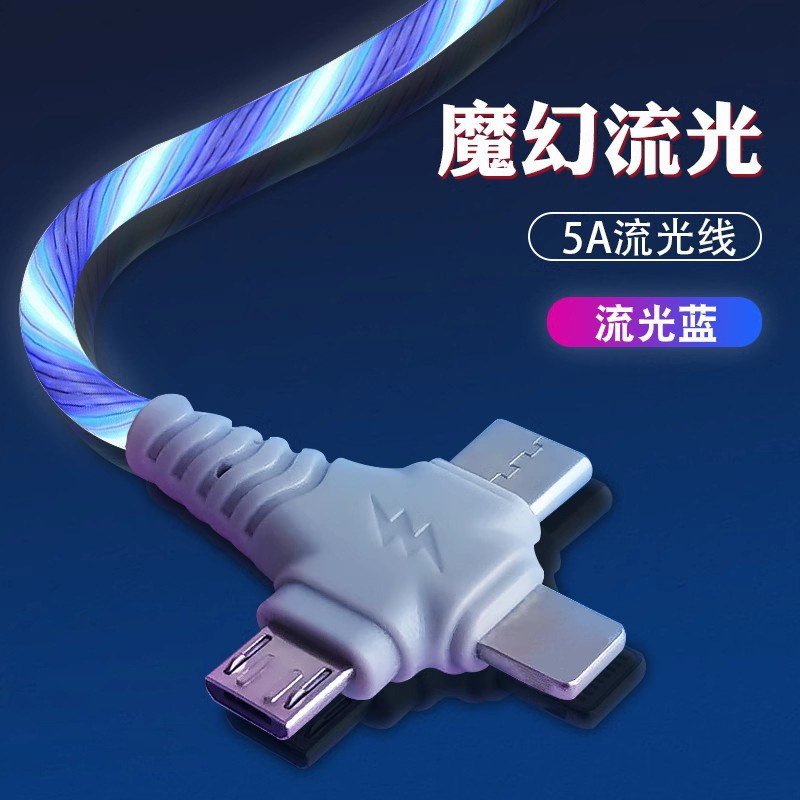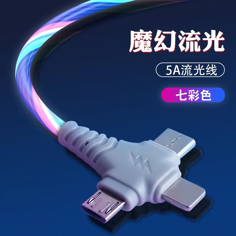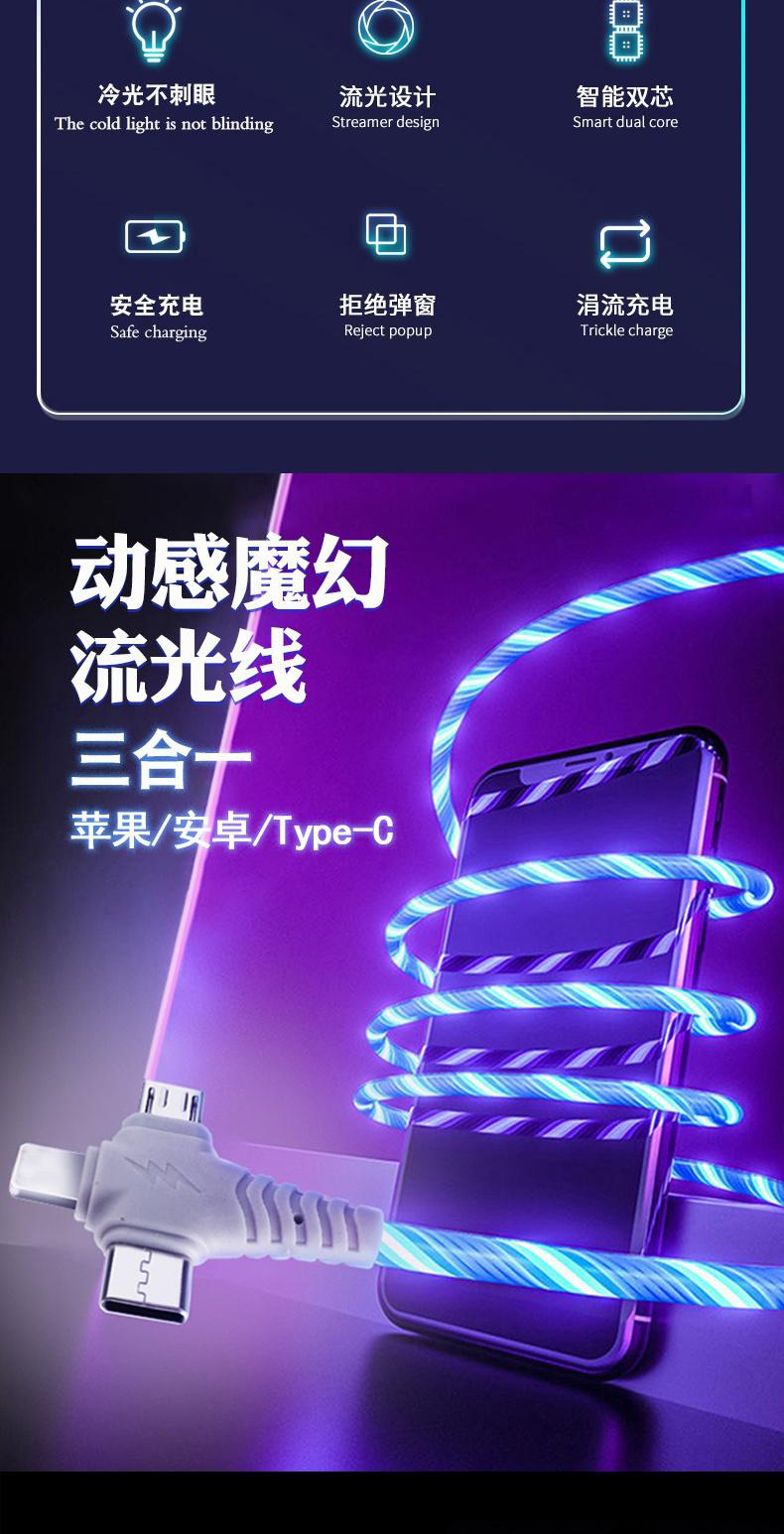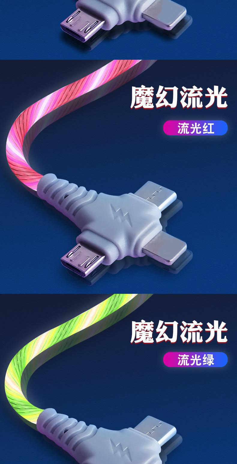 流光三合一快充数据线数据传输适用苹果华为小米安卓手机type-c线