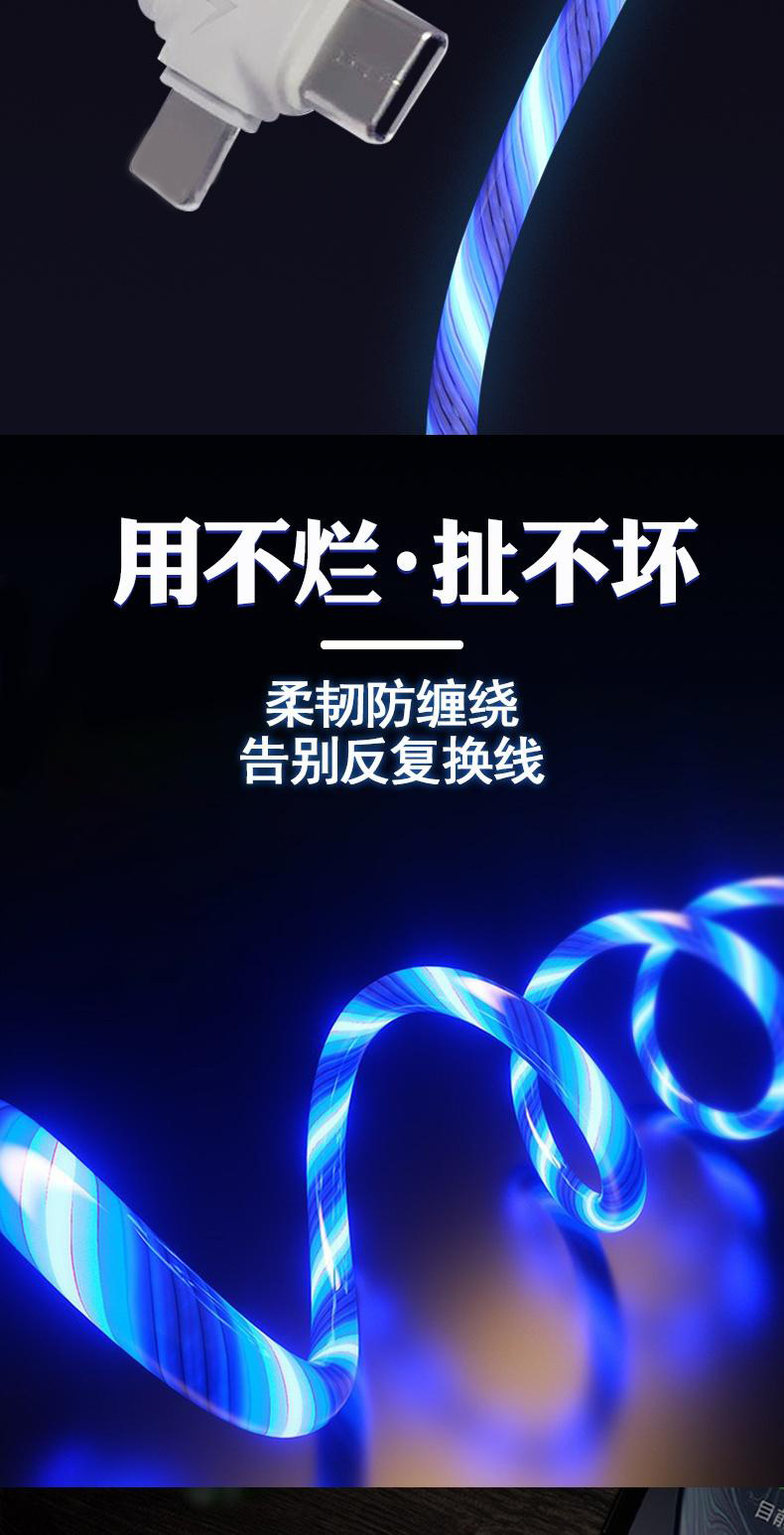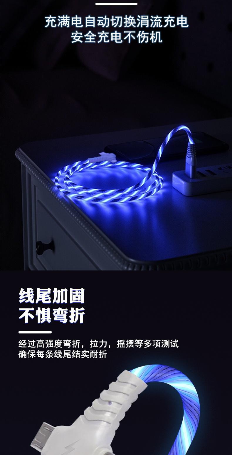 流光发光数据线适用苹果15华为快充充电线type-c车载led流动1m2m