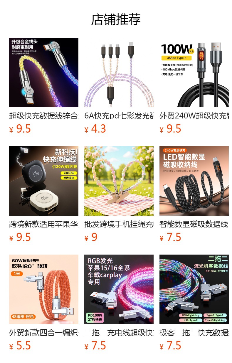 66W超级快充七彩流光数据线适用苹果17华为安卓充电线车载夜店风