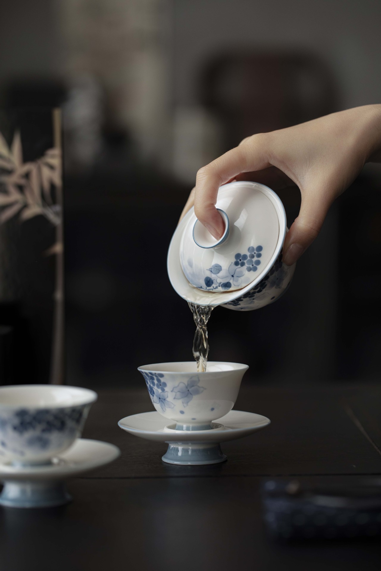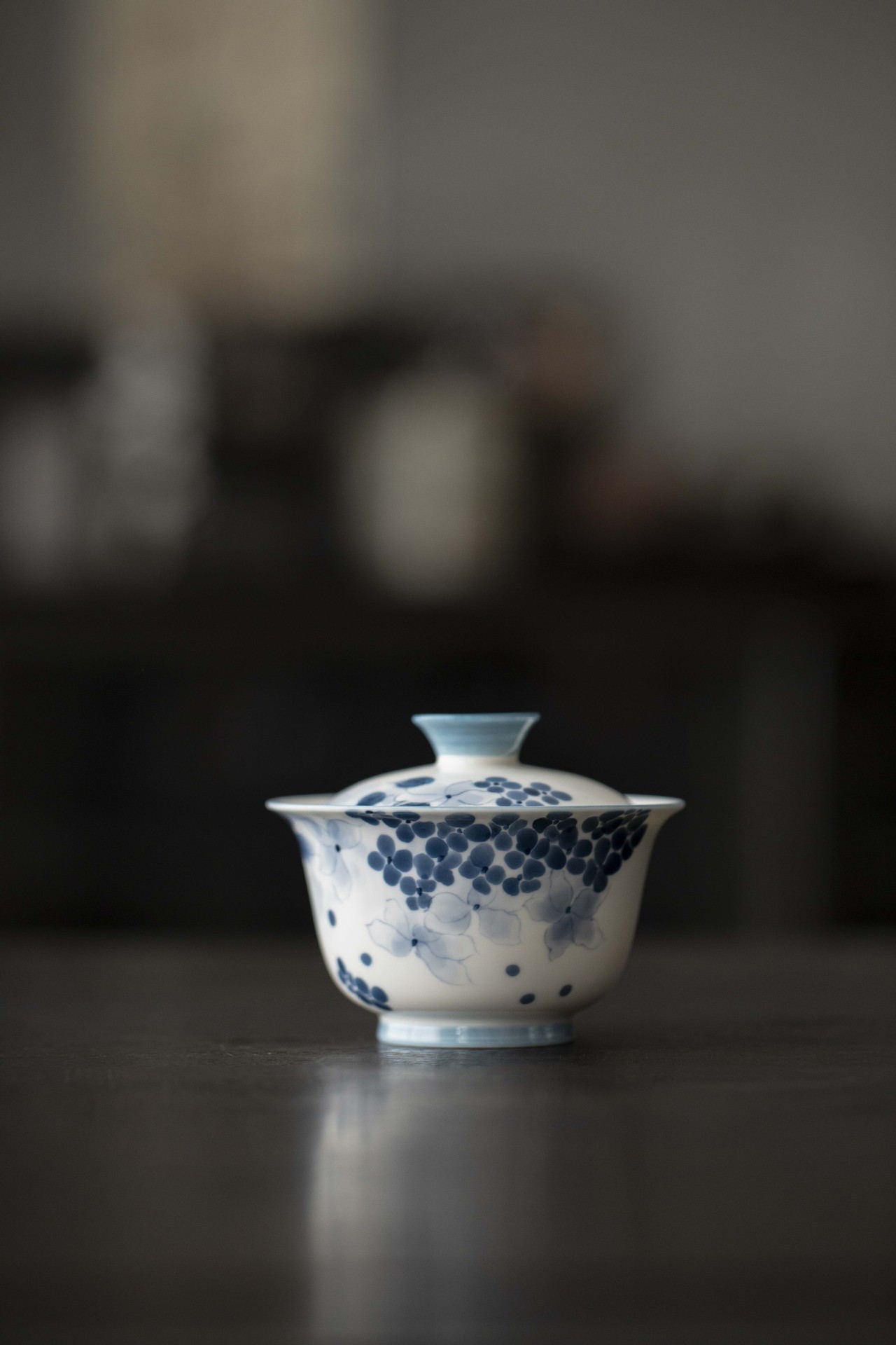 宜室茶話手描きアジサイ陶磁器二才蓋碗家庭用茶碗茶カップ青花磁器白磁茶器