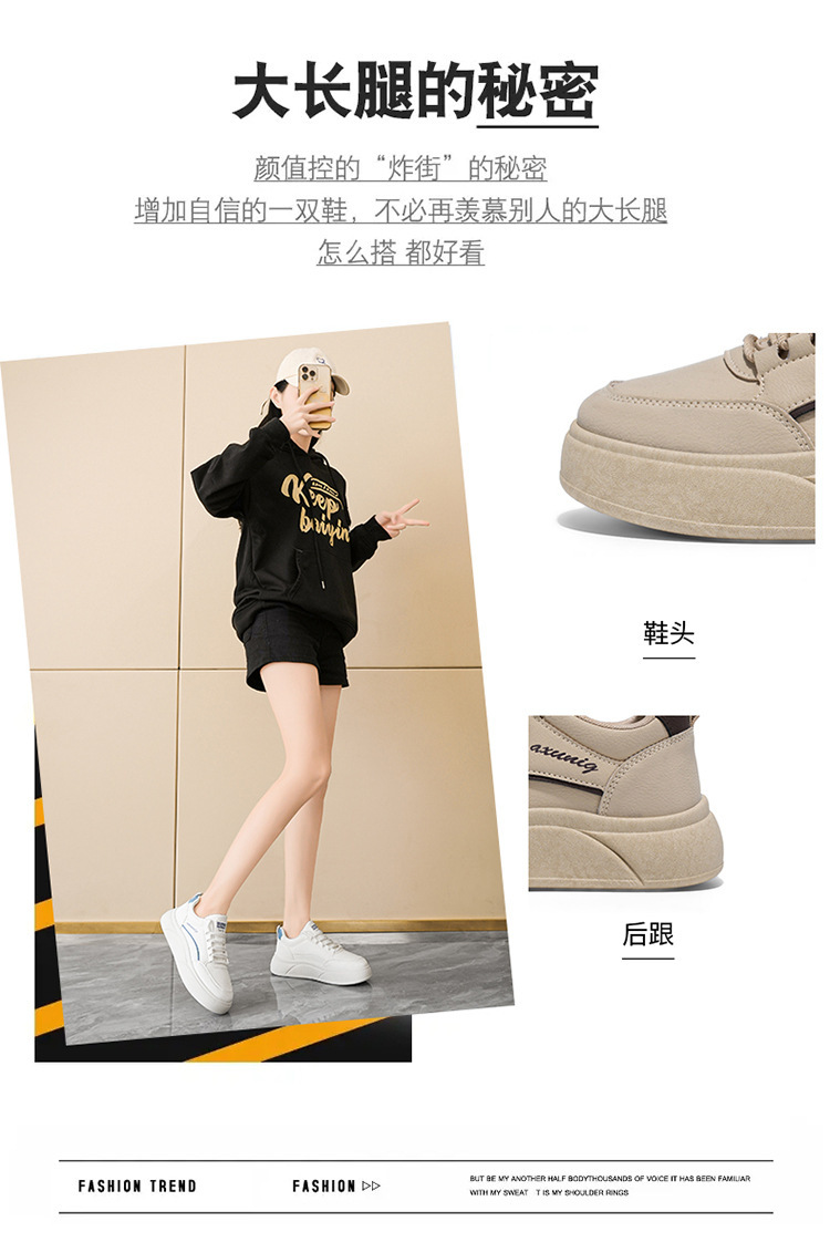 2025秋の白い靴の新型韓国版ins女子学生の厚い底が高くなります。