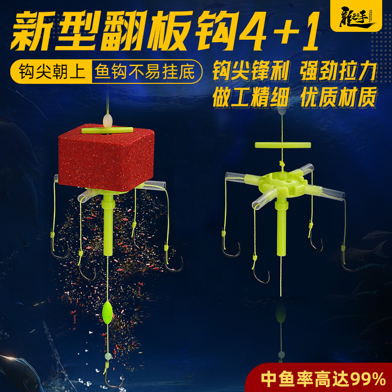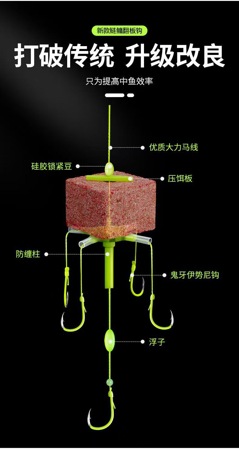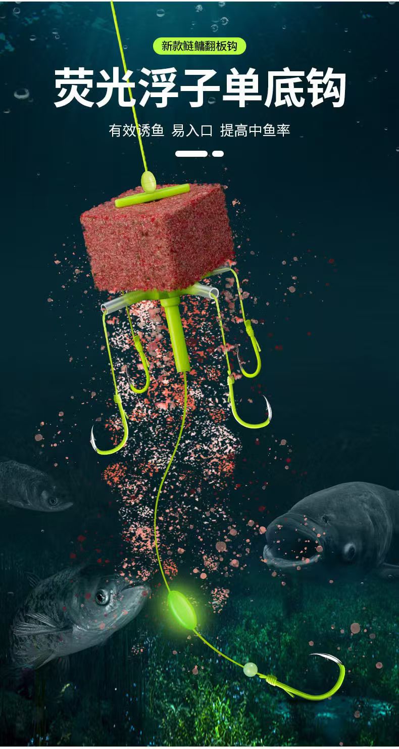 新款方块饵五爪钩浮钓鲢鳙钓组翻板钩朝天钩万向钩方块饵爆炸钩