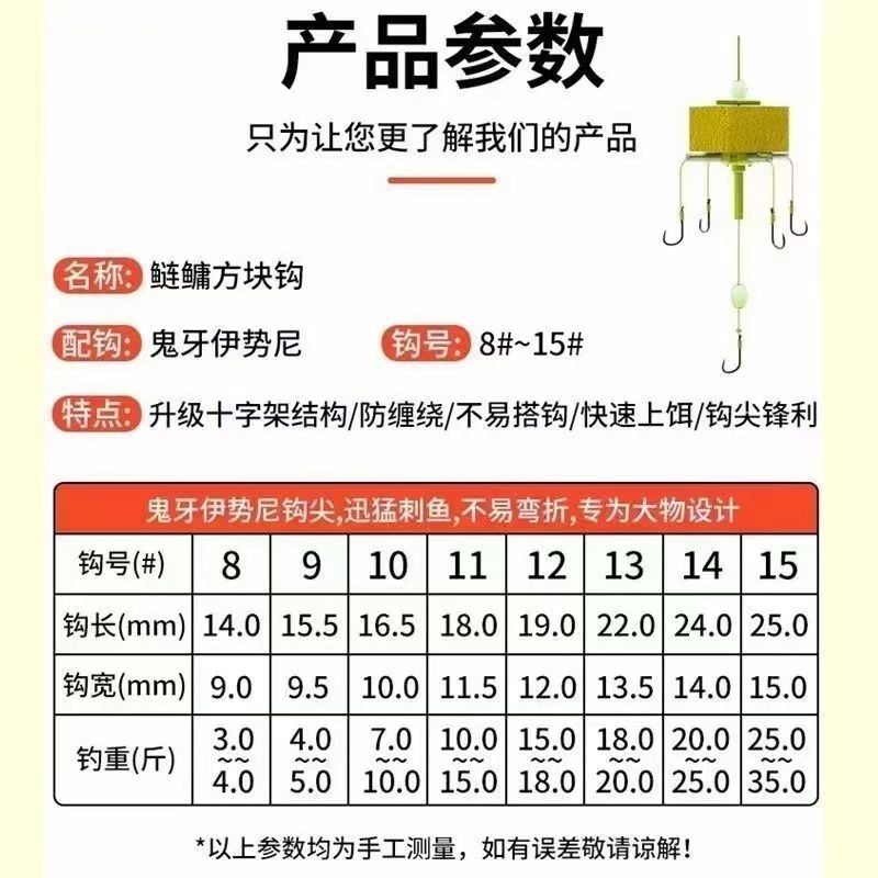 新型钓鱼鲢鳙钩两用方块钩套装线组海杆浮漂翻板钩爆炸钩大头鱼钩