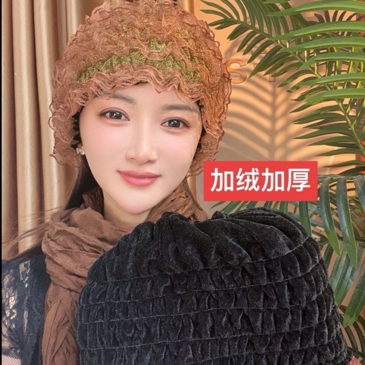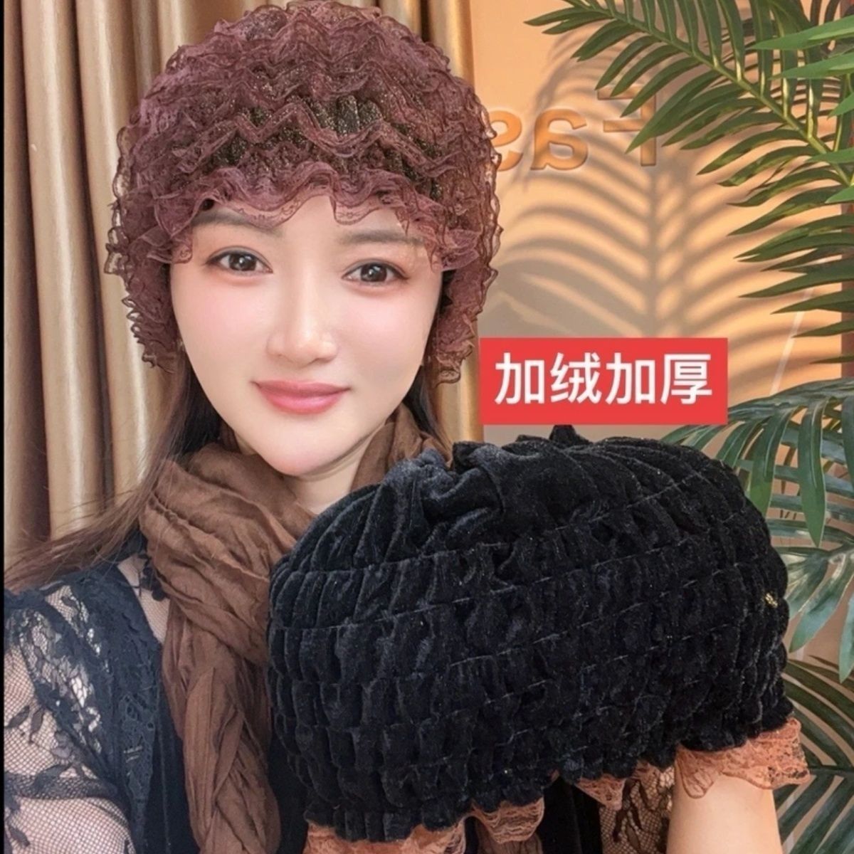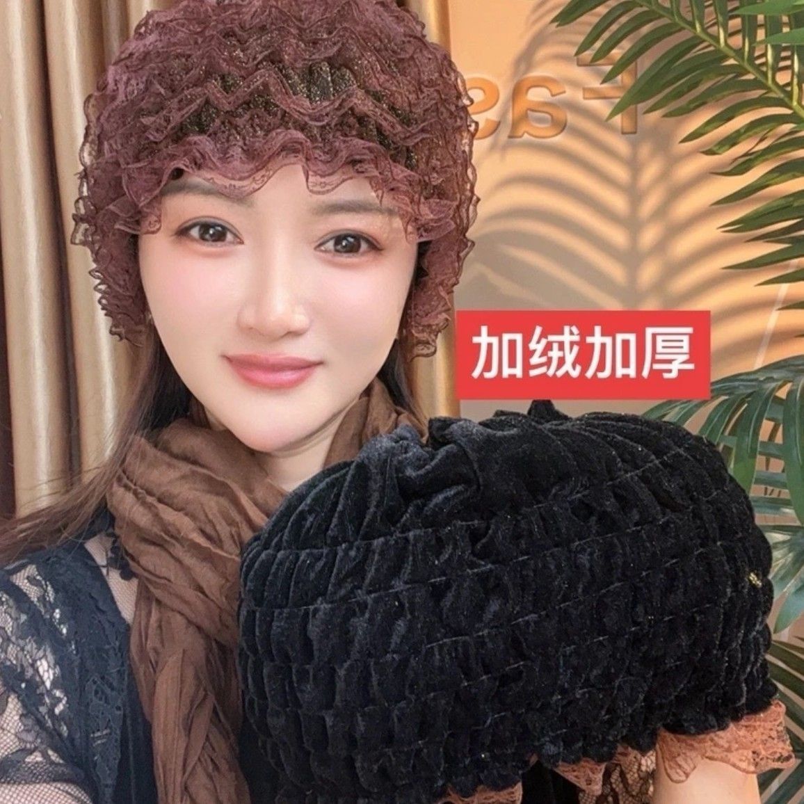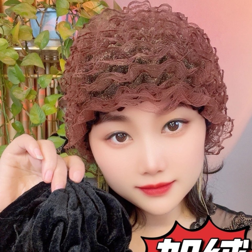 新しいベルベットは美人の糸の弾力性レースの帽子を厚くして白髪を隠して髪を砕く層の帽子ファッションの家庭をカバーしている