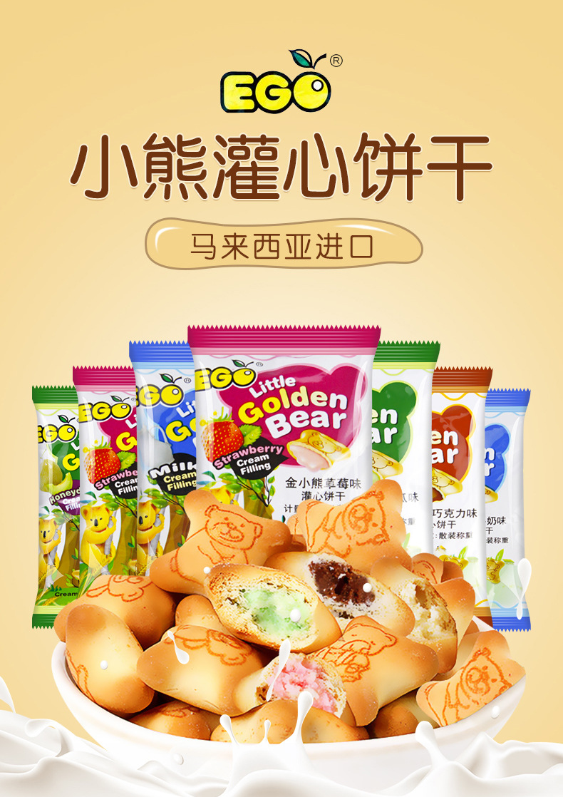 代发 金小熊注心饼干EGO饼干混合口味休闲儿童小零食马来西亚进口
