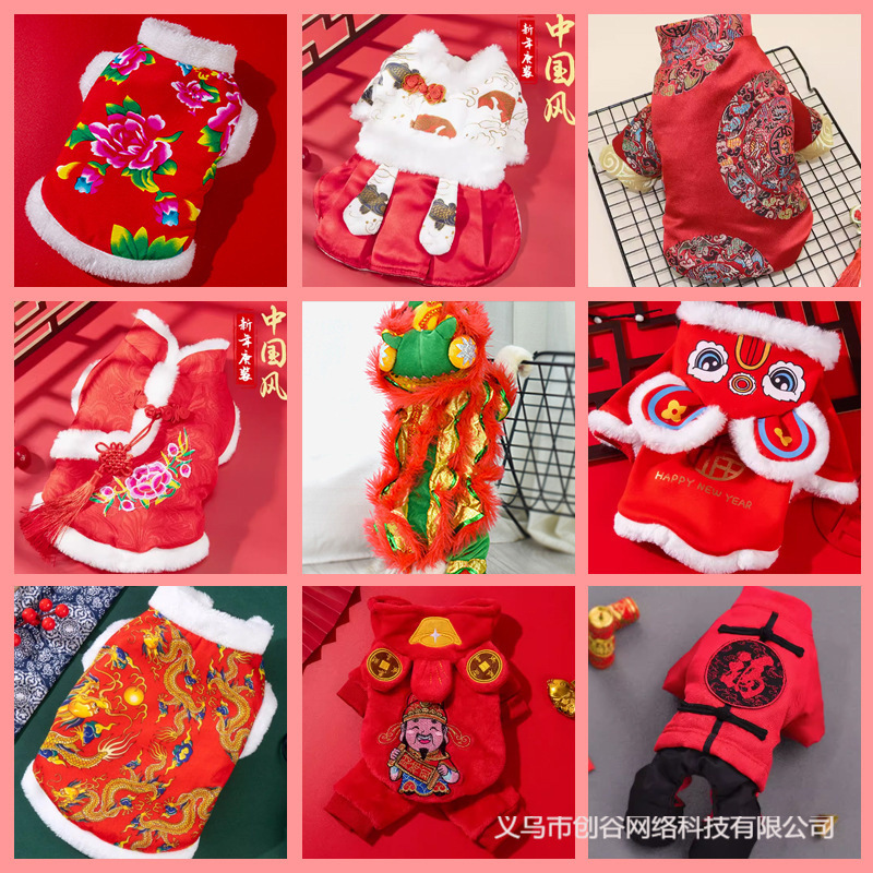 犬の新年の服のお祝いの唐の服装の秋冬の厚いテディの法の闘科基の猫の新年のペットは年を祝ってライオンを踊ります。