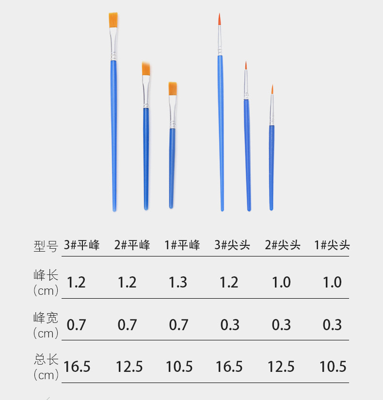 青い平頭ナイロン絵筆デジタル油絵子供絵画排筆石膏人形diy顔料線筆