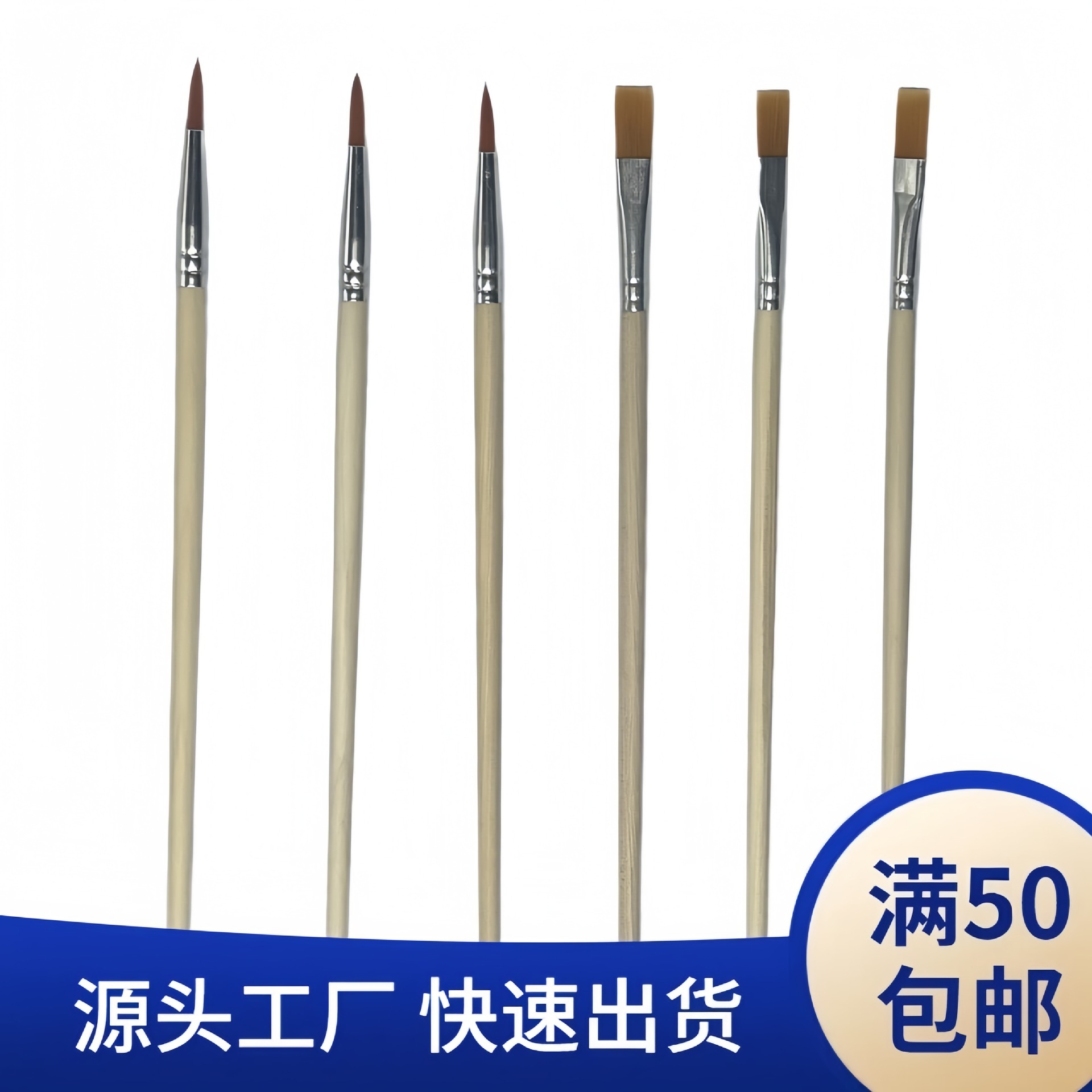 跨境厂家专业diy木杆笔刷原木尼龙毛尖头平头画笔美术油画笔