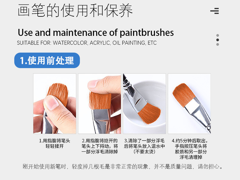 ウール平頭水チョーク水彩ペン一本セット初心者美術絵画専用軟毛絵筆