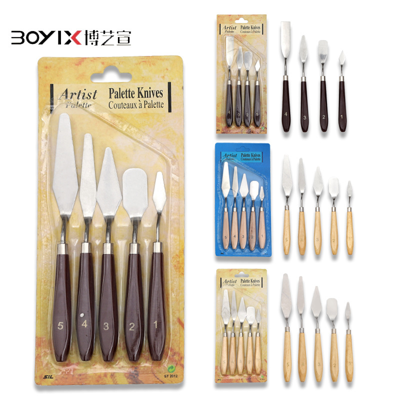 越境ステンレス木質油絵スクレーパー5本セット学生美術専用絵画絵の具調色スクレーパー
