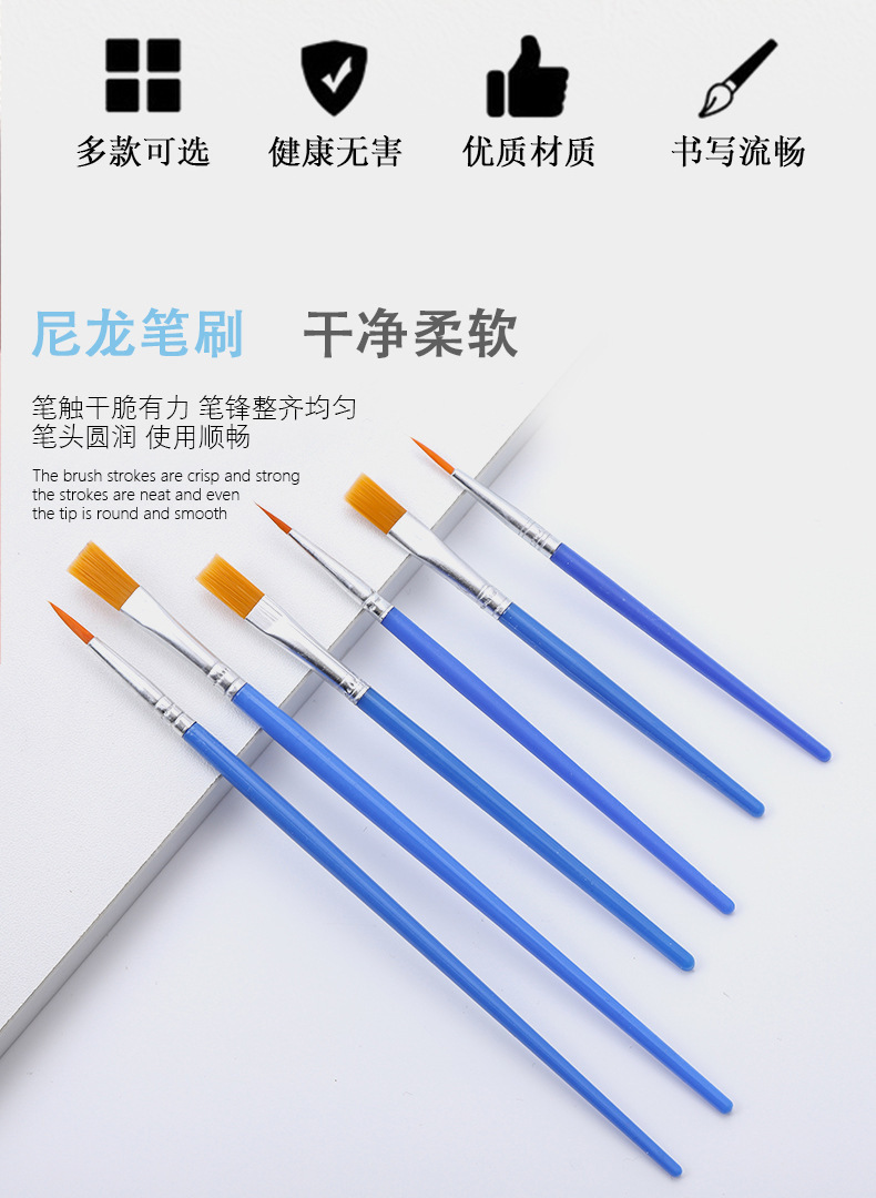 デジタル油絵ナイロンペンブラシ子供アクリル水粉顔料フラットペン水彩画ペン卸売り石膏線ペン